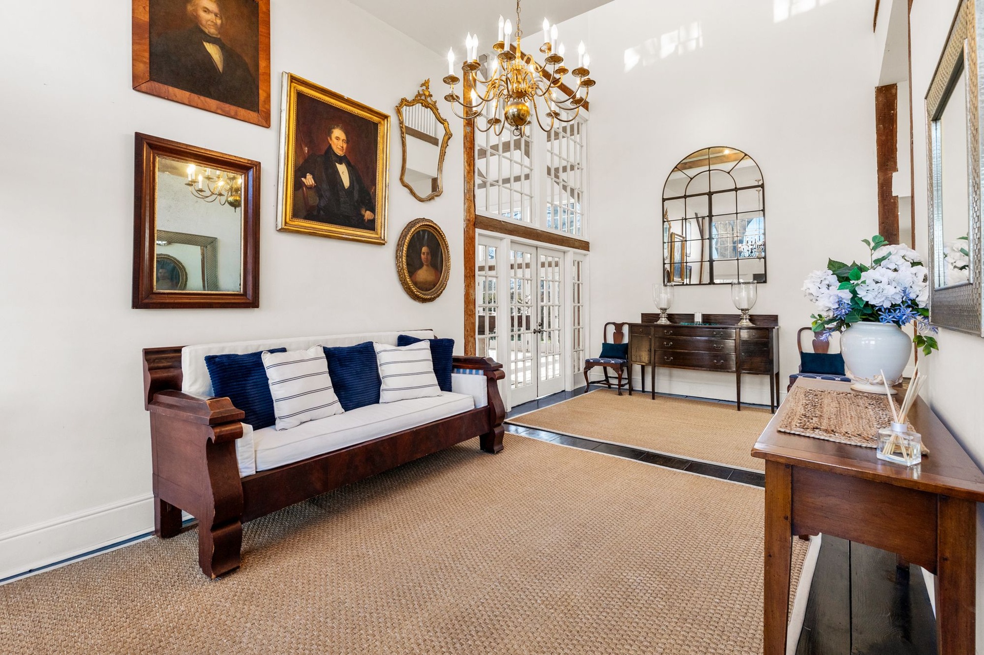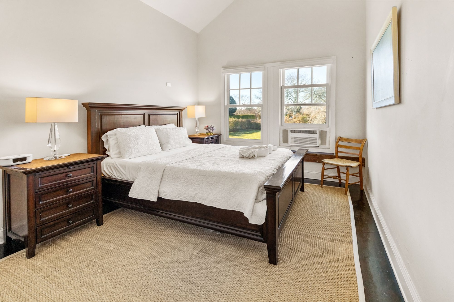 This beautifully restored barn with original beams is situated on 1.40+/- acres of lovely grounds in a most bucolic village setting south of the highway. The open plan first floor has soaring vaulted ceilings with exposed beams and large living spaces filled with light from floor to ceiling windows and tall glass doors. Enter through the welcoming foyer into the sunny great room. The farmhouse kitchen is adjacent to the formal dining area. Upstairs are three comfortable, generous bedrooms and three full baths, plus a sleeping loft that serves as a fourth bedroom. There is central air conditioning and a laundry room. Outdoors are an expansive bluestone patio and heated gunite pool. A delightful blend of historic charm and updated furnishings, this home is close to both town and ocean beaches.