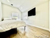 - Bedroom featuring lofted ceiling and wood finished floors
