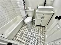 - Full bathroom with vanity and shower / bath combo