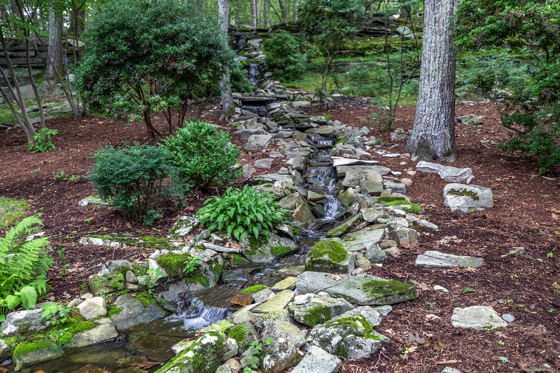 Architect-designed Bridgewater oasis set next to over 300 acres of Roxbury Land Trust. Tucked away on 4+ private acres, this light-filled contemporary by Stephen Lasar was designed with passive solar principles, offering a retreat with exceptional privacy and efficiency. With 2,500+ sq ft, the home features 4 bedrooms and 3.5 baths, including a first-floor suite and a dedicated office. Upstairs, you'll find 3 bedrooms, including the vaulted-ceiling primary which overlooks treetops and is complemented by a convenient second-floor laundry. Artistic hardscaping leads to a covered porch and active stream feature, connecting the home to its natural surroundings. At its heart is a well-appointed kitchen and stone fireplace living room that flows into the dining area, framed by windows showcasing fern-covered grounds and dramatic granite outcroppings. The finished walkout lower level includes a full bath, media room, workshop, and storage. Outdoor living shines with a composite deck and stone patios. An attached two-car garage offers storage or workshop space, while a separate barn provides room for hobbies or equipment. Just minutes to Bridgewater village and a short drive to New Milford, Roxbury, Washington, and Lake Lillinonah, this property blends architectural integrity, natural beauty, and convenience-offering tranquility without isolation.