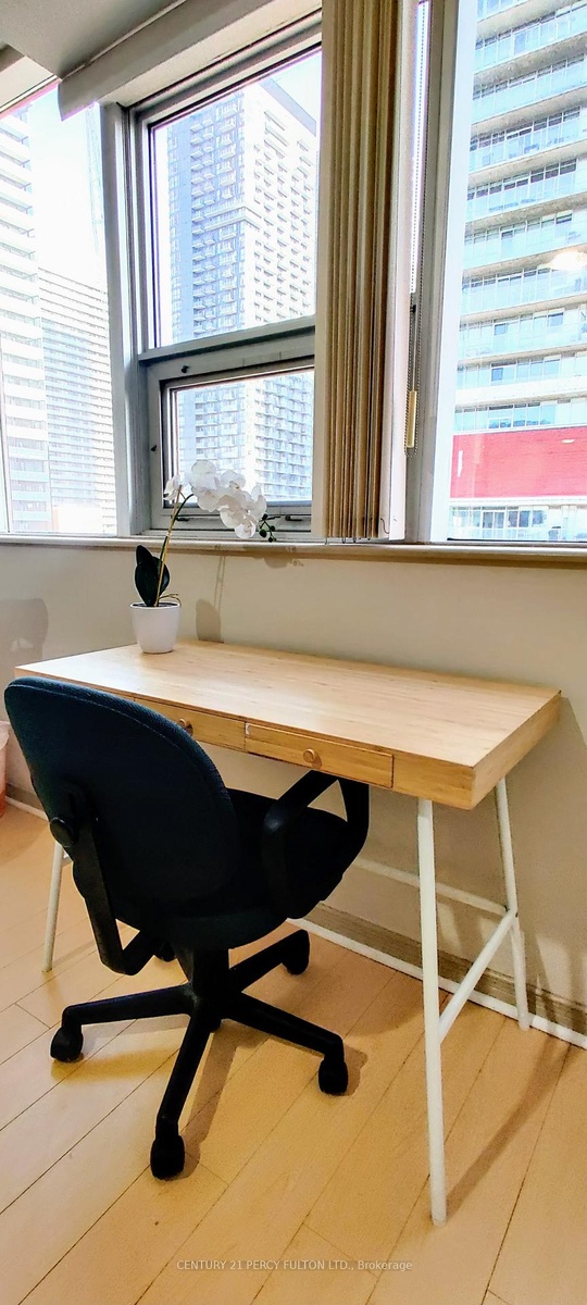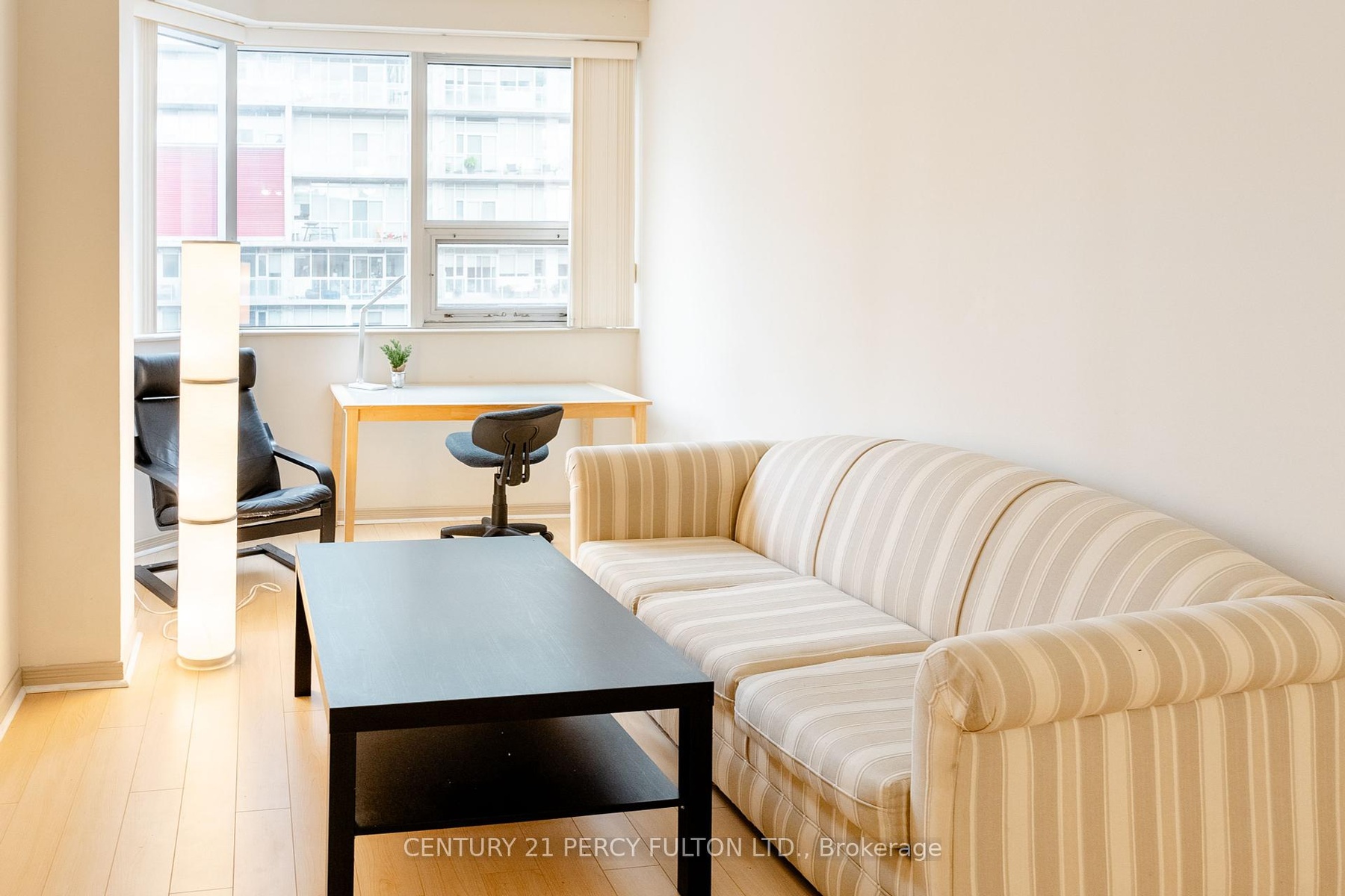 Kings Tower, Top Floor With CN Tower View In The Heart Of Downtown Toronto's Entertainment District. Extra Spacious & Bright 2 Bedroom suite (almost 800 sq.ft) And Ready To Move In! Fully Furnished & Equipped, New Wood Flooring, Bright, Extra High Ceilings, Well Maintained. Fantastic Value With 4 Full Appliances + Ensuite Laundry. Incredible Location - Convenient Access To TTC including two 24 Hour Streetcar lines + St. Andrews Subway Station, Steps away from the best restaurants, cafes, bars, grocery stores. Quick Walk To CN Tower, Rogers Center, Roy Thompson Hall, Scotiabank Theatre, TIFF, Princess of Wales Theatre And So Much More. Starbucks & Bulk Barn downstairs and Shoppers Drug Mart across the street so all your daily needs are covered. Building Features: On Site Concierge/Security, Visitor Parking, Fob Access For Individual Floors, 3 elevators for only 14 floors means no long elevator waits. Amenities Include Rec Centre With Gym, Showers, and Lockers, Billiards Room, Ping Pong, Party Room, PATIO WITH BBQ!! **EXTRAS** Parking and Locker Available at an Additional Cost.