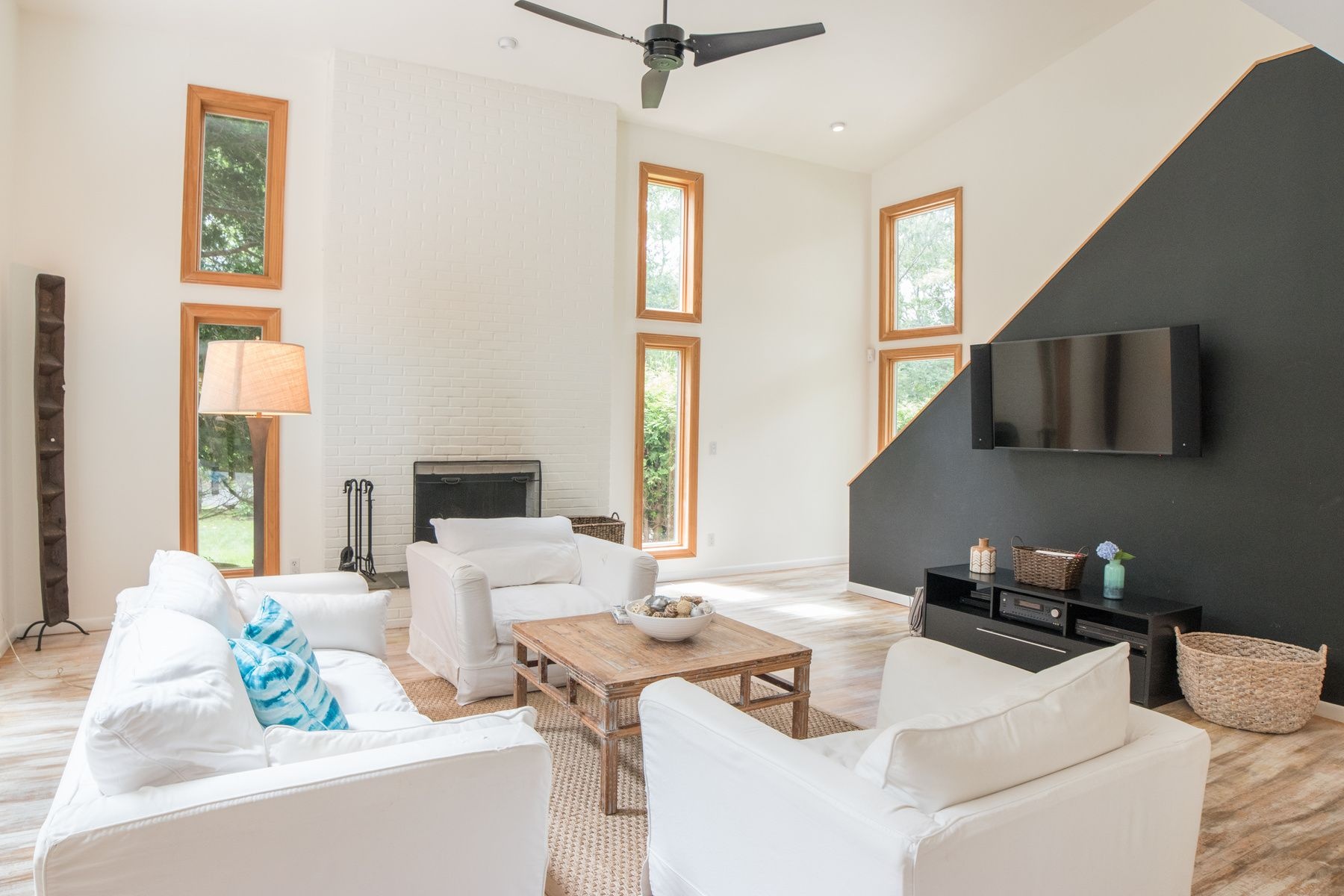 This light filled contemporary home balances beauty with functionality. Careful attention to detail has been spent on the interiors and beautifully groomed outdoor living spaces. The state of the art indoor/outdoor sound system and zen like grounds are perfect for relaxing and entertaining. This truly beautiful home offers a floor to vaulted ceiling brick fireplace, modern kitchen and furnishings, three bedrooms, two baths, heated pool and ultimate privacy. Just seven minutes away is East Hampton's famed Main Street with shopping, art galleries and an array of restaurants, 27 Montauk Avenue is the perfect location in which to relax or entertain friends... Summer: weekly rentals only: June: 1 Week $6K; 2 Weeks $10K July: 1 Week $7K; 2 Weeks $13K Aug-LD: 1 Week $8K; 2 Weeks $14K