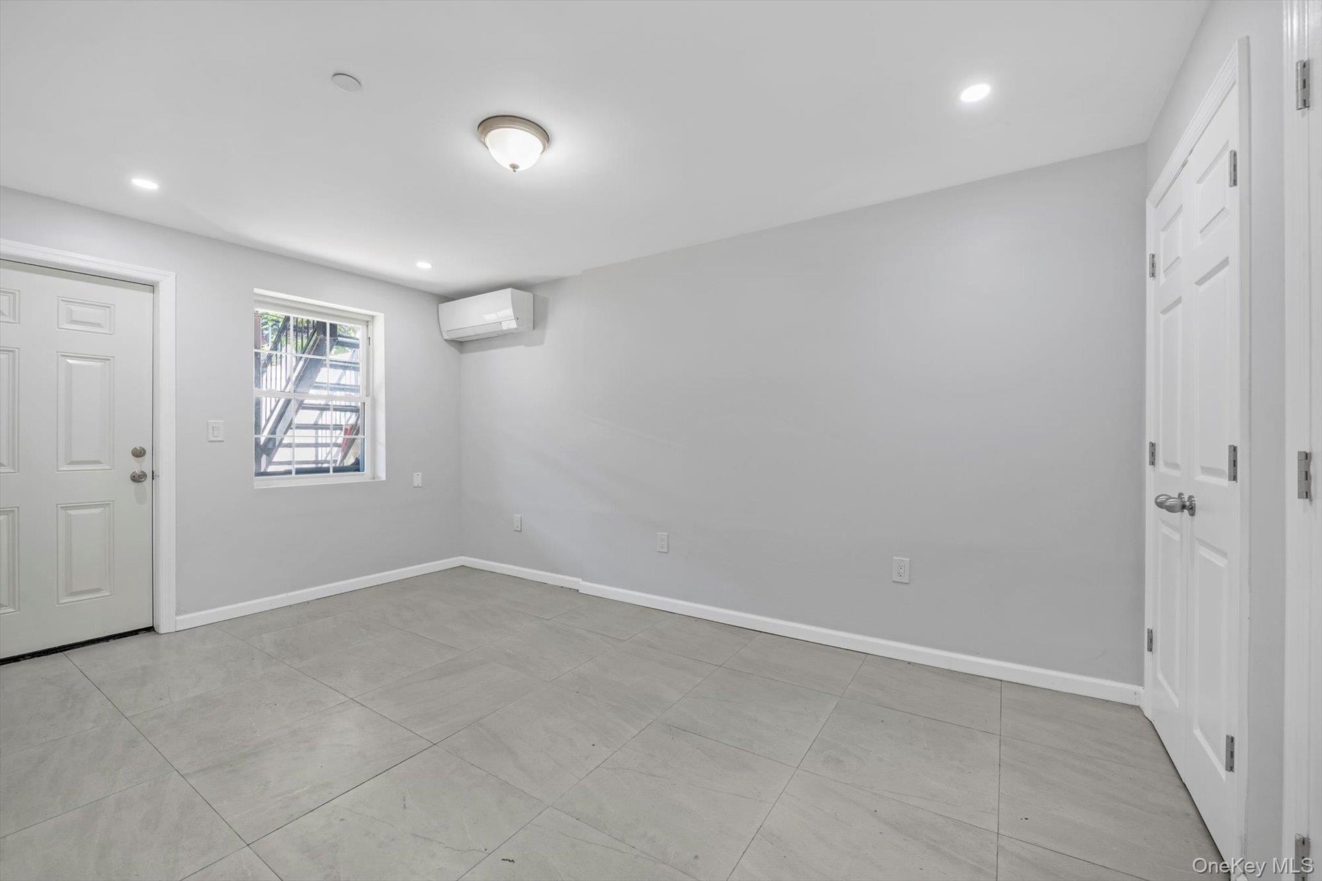 - Foyer entrance with recessed lighting, light tile patterned floors, and a wall mounted AC