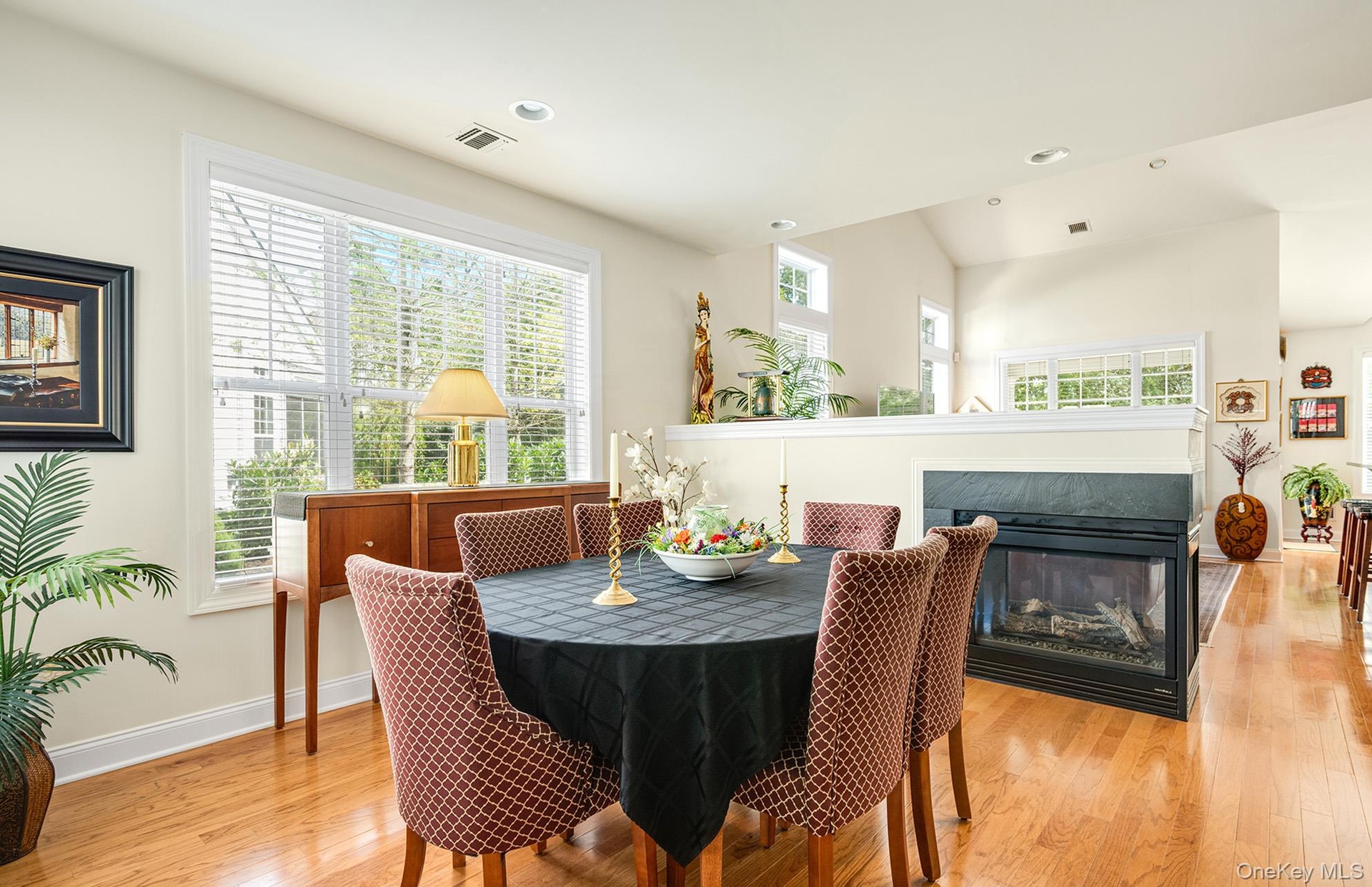 At the heart of the home, the chef’s eat-in kitchen is a true showpiece, complete with a generous center island that seats six, abundant cabinetry, and ample workspace. Sliding glass doors open to a private patio—perfect for morning coffee or evening barbecues. The kitchen flows seamlessly into a cozy family room with a gas fireplace, creating a warm and welcoming gathering space.
