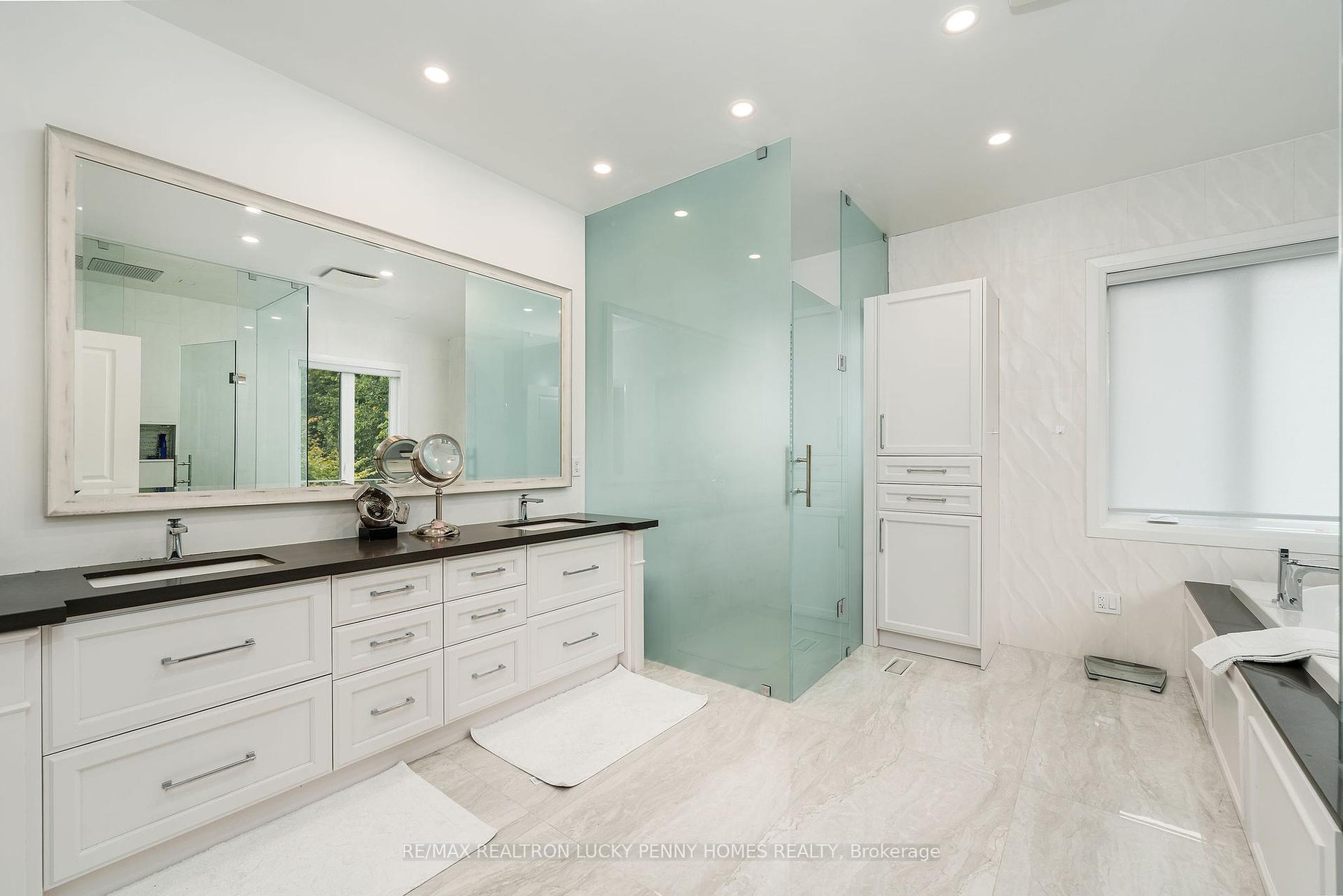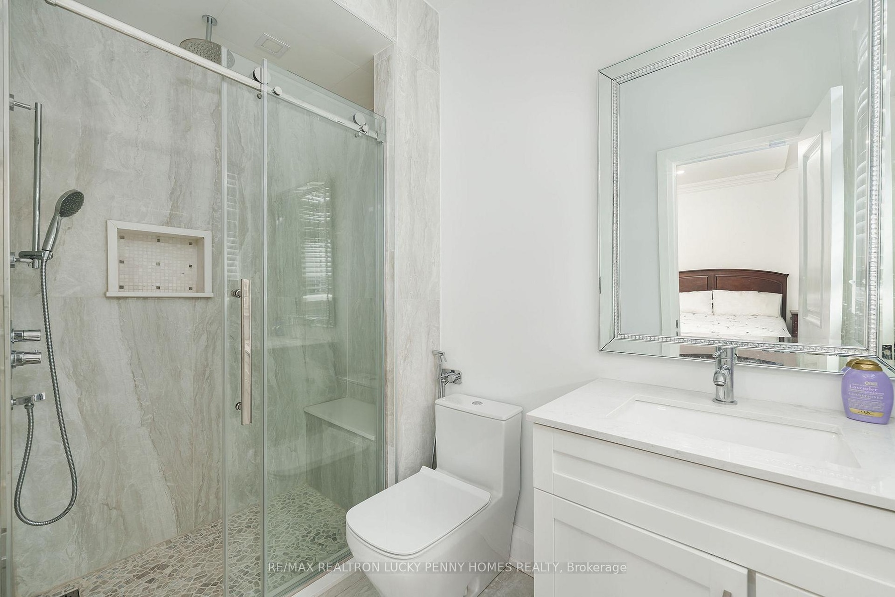 Perfectly positioned on a full ravine lot, 30 Bernadotte Drive offers an extraordinary blend of privacy, elegance, and modern comfort. This meticulously upgraded residence boasts 5 spacious bedrooms with every bedroom appointed with its own ensuite. Total 7 full washrooms, plus additional 2 powder rooms. Designed with both grand entertaining and intimate family living in mind, the homes thoughtful layout seamlessly combines sophistication with everyday functionality. From the moment you step through the front door, you are greeted by an abundance of natural light and uninterrupted views of the breathtaking garden. Sunlight pours in from every direction, creating a warm and uplifting atmosphere throughout the day. The connection to nature is ever-present from the sight of mature trees swaying gently outside to the birdsong that fills the air year-round. The heart of the home is the upgraded kitchen, complete with all new appliances, complemented by beautifully renovated bathrooms, including two powder rooms and a spa-inspired primary ensuite featuring a heated, massage bathtub. New tile flooring, custom closets in every bedroom, a freshly repainted interior, and a new roof further enhance the homes modern appeal. Comfort is assured with two furnaces one newer and the other well-maintained along with dual air conditioning units. The outdoor space is a true entertainers dream, featuring a sparkling pool, charming gazebo, and a dedicated pool house with a 3-piece washroom. Whether hosting a lively summer gathering or enjoying a quiet evening by the water, this backyard delivers the perfect ravine setting. Additional highlights include a 3+1 tandem car garage, and a fully finished basement with a wet bar, offering endless possibilities for recreation or extended family living. 30 Bernadotte Drive is more than just a home it is a serene sanctuary where luxury meets nature, providing a lifestyle of comfort, beauty, and tranquility.