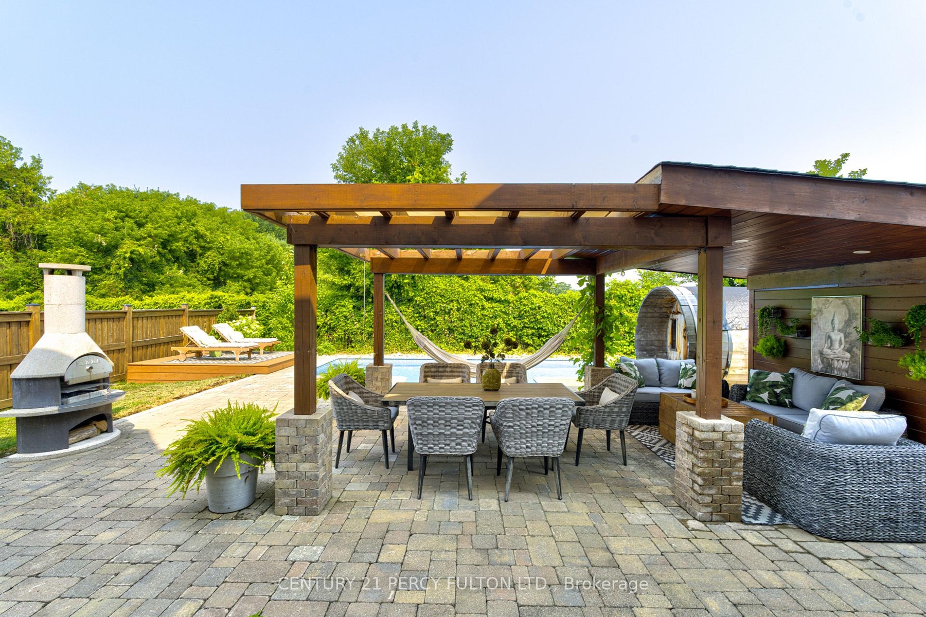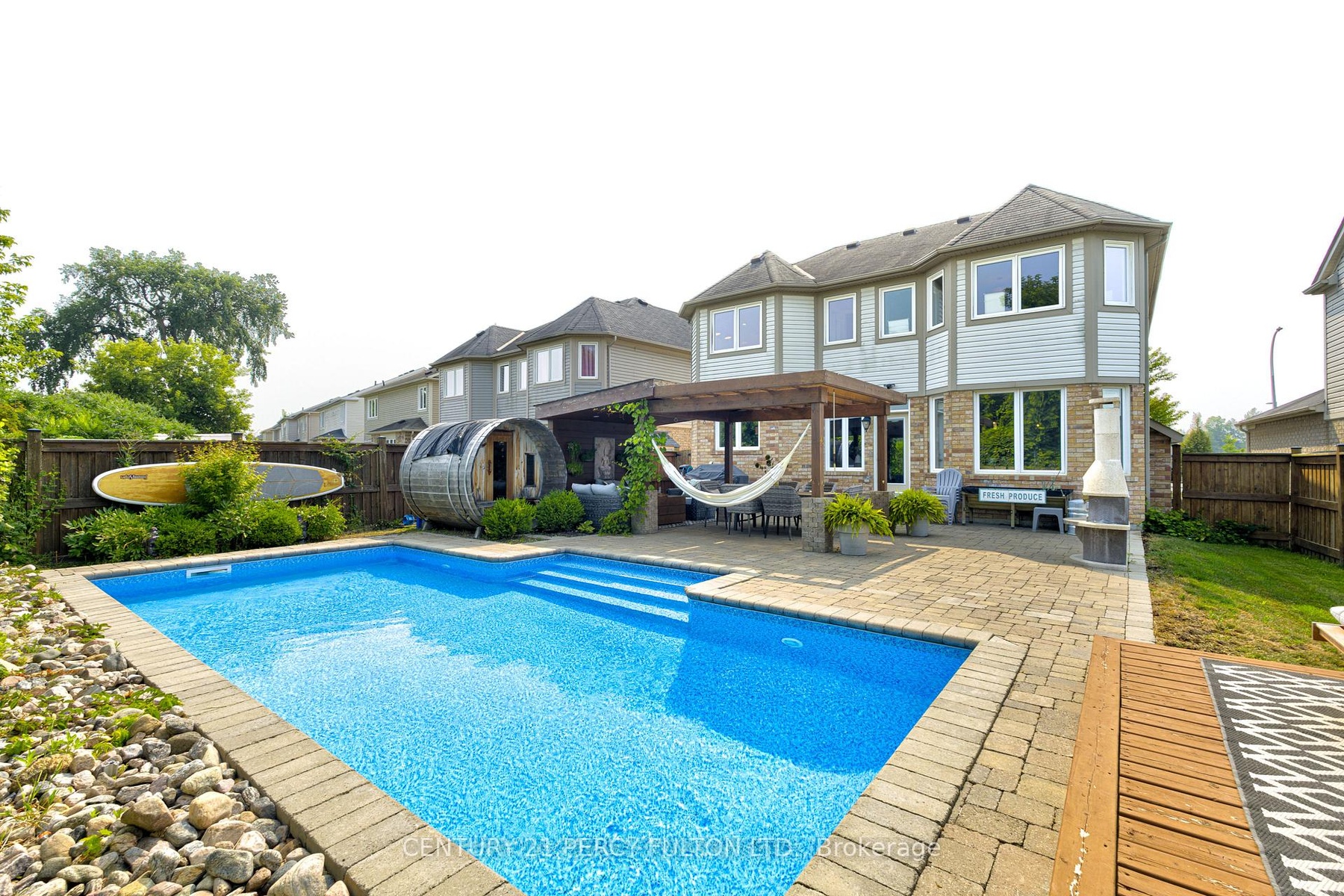 This is more than a home - its a lifestyle. Welcome to your dream property: a rare opportunity to own a beautifully upgraded 4+1 bedroom, 3-bath home backing onto the historic Sir Frederick Banting Homestead. Offering unmatched privacy and tranquility with no rear neighbours, this home is nestled in a quiet, family-oriented community. Escape to your own backyard oasis featuring a saltwater in-ground pool (new liner 2025, updated heater & pump 2023), outdoor sauna, stone fireplace/pizza oven, pergola, and professionally landscaped dining and lounge areas - an exceptional setting for entertaining or unwinding in style. Inside, enjoy a bright, airy open-concept layout with 9-ft ceilings and hardwood floors throughout. The renovated kitchen offers quartz countertops, pantry, centre island, ceramic floors, LG Café stove & fridge, Miele dishwasher and a water system softener and reverse osmosis system. It flows seamlessly into the eat-in area and family room with gas fireplace. The main floor also features a formal dining room with coffered ceilings and a versatile front room ideal as a living room or private home office. Upstairs features 4 spacious bedrooms, including a primary retreat with walk-in closet and renovated ensuite showcasing a soaker tub and glass walk-in shower. A 2nd floor laundry room adds everyday convenience. The finished basement expands your living space with a bedroom, home theatre, bar area, storage, and a rough-in for a bathroom - offering flexibility for multi-generational living or future rental use. Located across from a school and just minutes to parks, trails, and local amenities, this home offers the ultimate blend of comfort, functionality, and lifestyle for families, upsizers, and those who love to entertain or spend time outdoors.