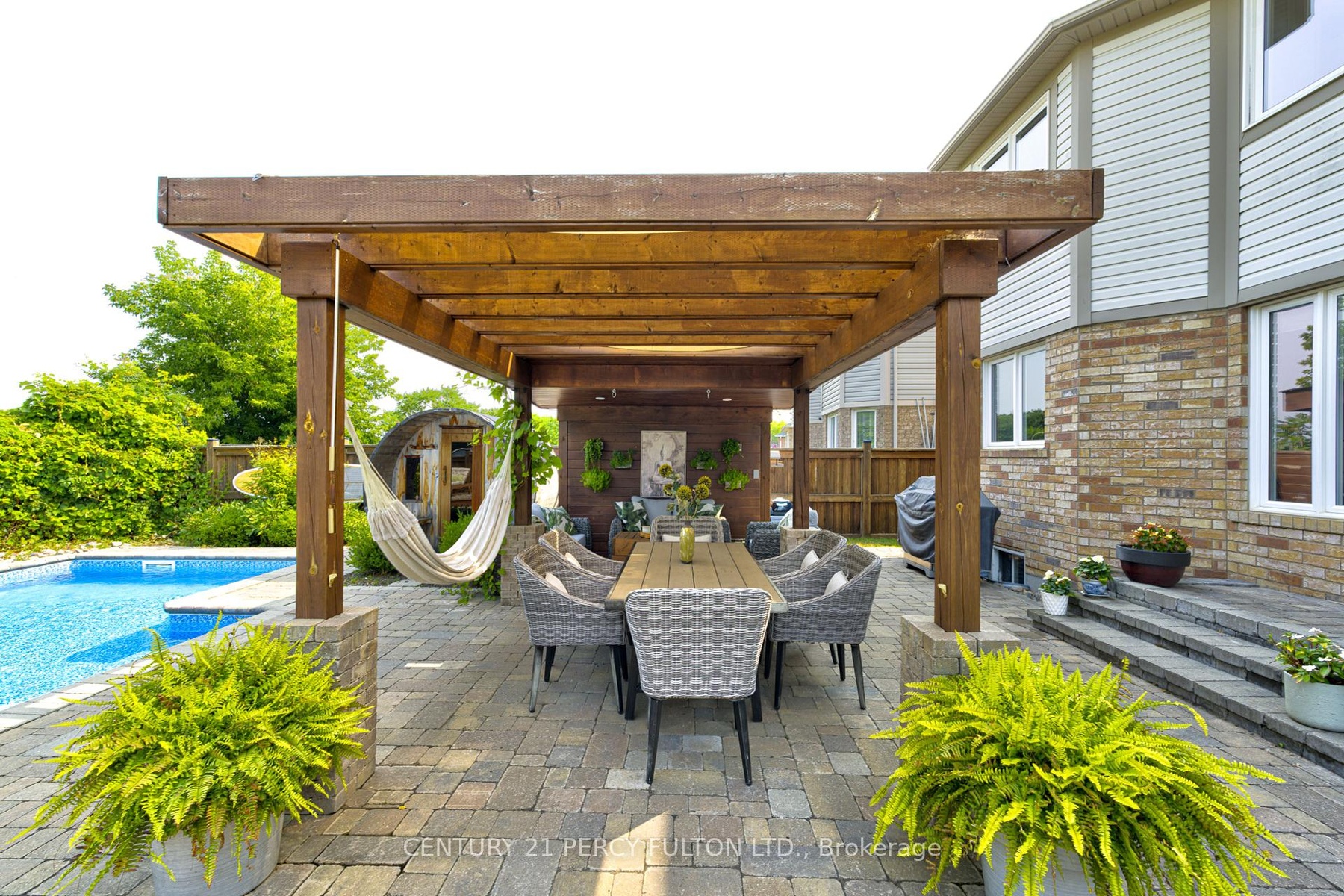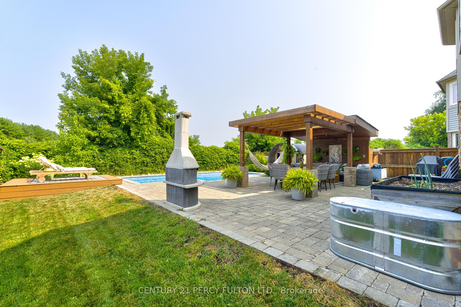 DescriptionThis is more than a home - its a lifestyle. Welcome to your dream property: a rare opportunity to own a beautifully upgraded 4+1 bedroom, 3-bath home backing onto the historic Sir Frederick Banting Homestead. Offering unmatched privacy and tranquility with no rear neighbours, this home is nestled in a quiet, family-oriented community. Escape to your own backyard oasis featuring a saltwater in-ground pool (new liner 2025, updated heater & pump 2023), outdoor sauna, stone fireplace/pizza oven, pergola, and professionally landscaped dining and lounge areas - an exceptional setting for entertaining or unwinding in style. Inside, enjoy a bright, airy open-concept layout with 9-ft ceilings and hardwood floors throughout. The renovated kitchen offers quartz countertops, pantry, centre island, ceramic floors, LG Café stove & fridge, Miele dishwasher and a water system softener and reverse osmosis system. It flows seamlessly into the eat-in area and family room with gas fireplace. The main floor also features a formal dining room with coffered ceilings and a versatile front room ideal as a living room or private home office. Upstairs features 4 spacious bedrooms, including a primary retreat with walk-in closet and renovated ensuite showcasing a soaker tub and glass walk-in shower. A 2nd floor laundry room adds everyday convenience. The finished basement expands your living space with a bedroom, home theatre, bar area, storage, and a rough-in for a bathroom - offering flexibility for multi-generational living or future rental use. Located across from a school and just minutes to parks, trails, and local amenities, this home offers the ultimate blend of comfort, functionality, and lifestyle for families, upsizers, and those who love to entertain or spend time outdoors.Amenities- Auto Garage Door Remote