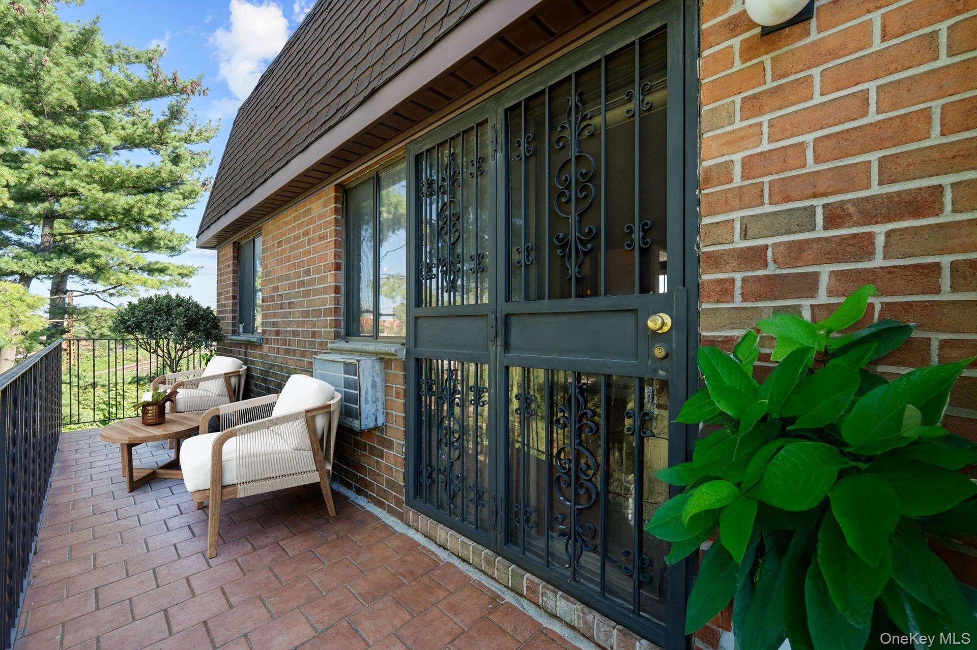 - Entrance to property featuring brick siding