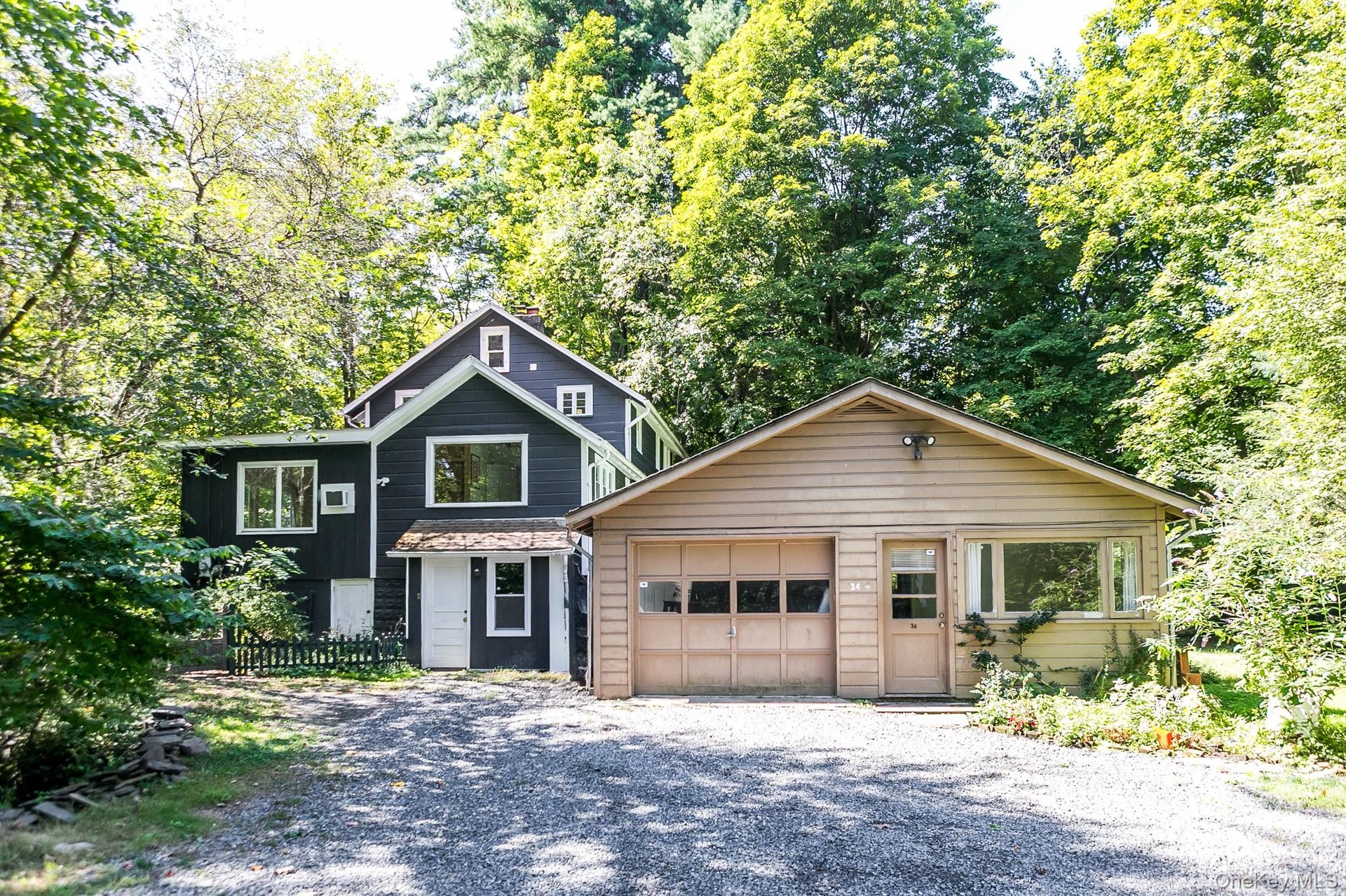 Welcome to The Mill House, nestled in the vibrant heart of Woodstock, NY—a delightful farmhouse that beautifully blends historic charm with modern comforts. Spanning 1,764 square feet, this inviting home includes three cozy bedrooms and two full bathrooms, offering a spacious layout for everyday living. As you wander through the lush gardens and cross a quaint bridge over a seasonal stream, you'll be welcomed by a charming Dutch door. Inside, the wide plank hardwood floors exude warmth, accentuated by a stately fireplace that promises cozy evenings. The formal dining room, with its extensive built-in shelves, is an ideal spot for family meals and entertaining friends. Step outside from the living room onto a generous bluestone patio, surrounded by the serene greenery of the backyard—perfect for sipping your morning coffee or unwinding at sunset. A stroll through the yard leads you to the historic Mill Stream, where you can bask in the soothing sounds of nature. Beyond the main house, discover a detached garage paired with a versatile guest cottage or studio, complete with its own bath and kitchen. This additional space is perfect for hosting guests, setting up an art studio, or creating a private home office. Situated on over an acre, this home grants access to the picturesque Mill Stream, providing a peaceful waterfront ambiance set back from road offering a private feeling. Its convenient location near the town of Woodstock ensures that local amenities are just a stone's throw away. Whether you're seeking a tranquil retreat or a vibrant home for entertaining, 36-38 Ohayo Mountain Road provides a wonderful blend of both. Immerse yourself in the unique charm and boundless opportunities this enchanting property has to offer.