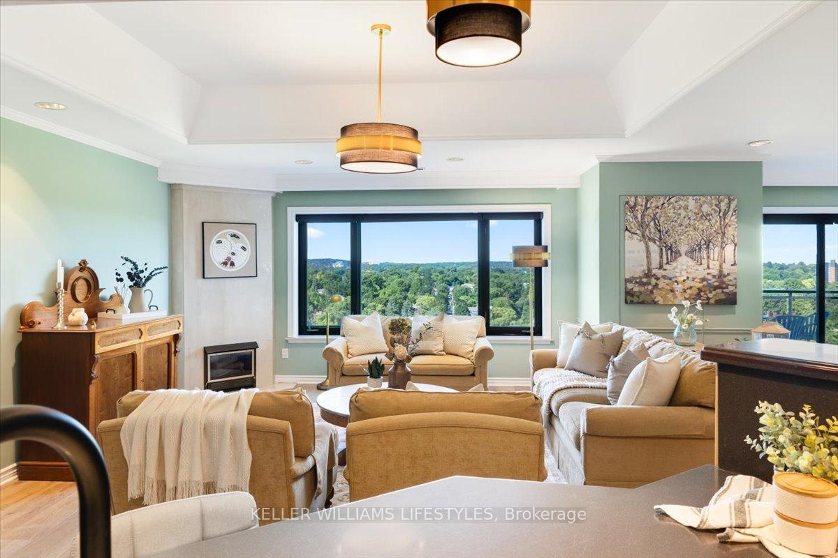 A remarkable 1,731 sq. ft. condo with city, river, and park views all in the heart of London. Did you know that there are only 3 units per floor in this exceptional building?! Regency Towers is located on the Forks of the Thames. This exquisite suite is bathed in light with an expansive living area with 2 bedrooms, 2 bathrooms, and 2 balconies with panoramic, unobstructed views of the river, parks, and city. There are added touches of refined quality such as crown moulding, newer hardwood floors, tray ceiling in the living room, wet bar, and multi-purpose second bedroom with Murphy bed. The updated kitchen with island & marble floors is a combination of functionality and sophistication. In suite laundry with brand new washer/dryer. Residents enjoy access to a recently renovated party room with fireplace, big screen, billiard table, ping pong, a lounge, games area, reading nook, meeting room area and kitchenette. This unit has two secure underground parking spots and two storage lockers (one located across the hall from the unit). Even maintenance fees cover Rogers TV, internet, and water. This condo offers space, sophistication, and spectacular views in the heart of the city.Just steps from Canada Life Place, Covent Market, Museum London, walking and bike paths. This building is always in pristine condition and has excellent Property Management (Dickenson Property Management). This condo offers space, sophistication, and stunning views!