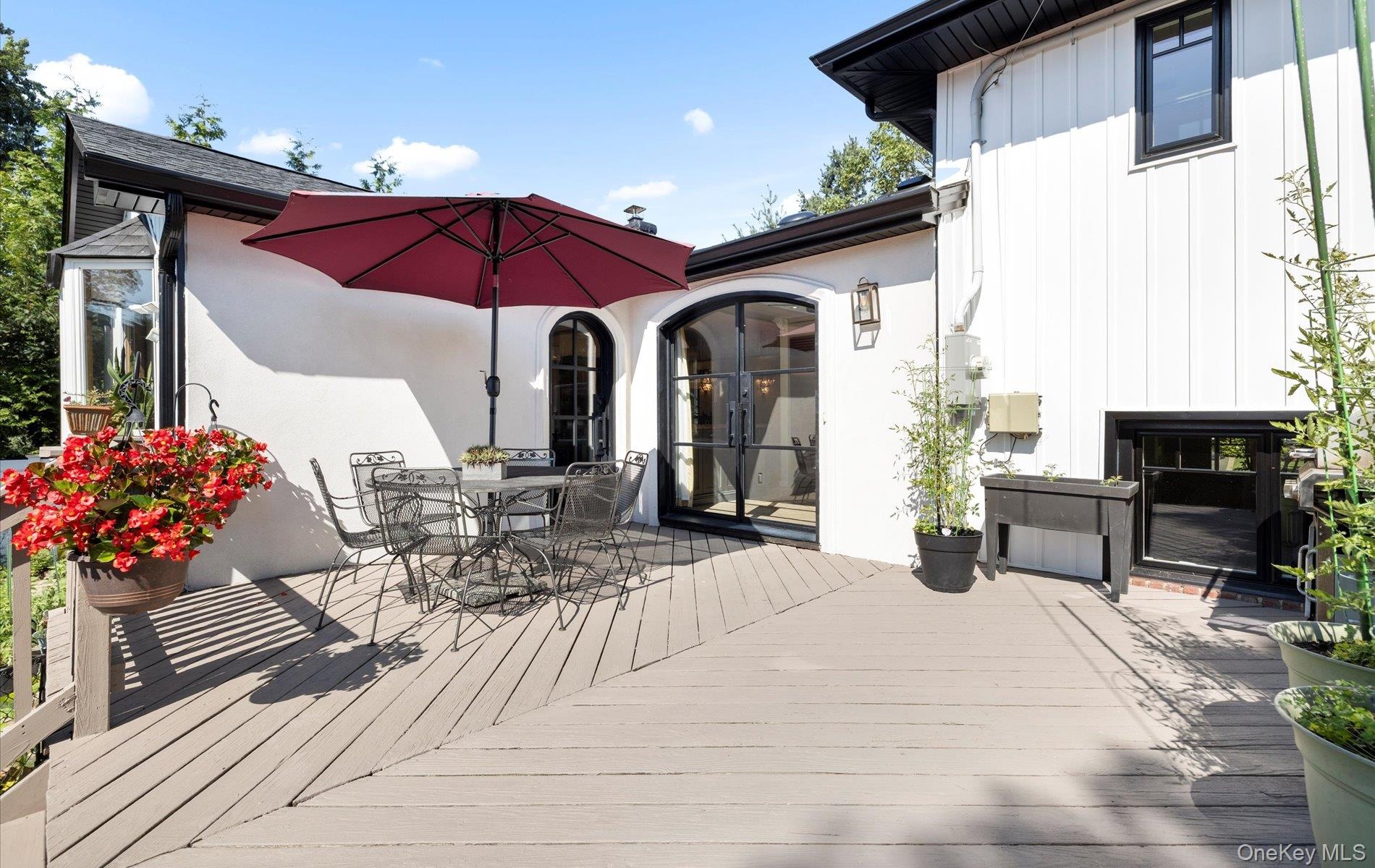 Welcome to 14 John Drive, this stunning & updated expanded split level home features modern curb appeal, classic timeless style, new front granite exterior, walkway and driveway. The upgrades continue with: new siding, stucco exterior, new 50 year architectural roof and all new windows and doors. From the moment you enter the 2-story foyer, you are welcomed with sunlight and open space to either the first-floor spacious den leading to the bluestone patio or the main level open concept living space with gleaming hardwood floors. The Eat-In-Kitchen features, new cabinetry and high-end appliances and granite countertops. Spectacular wrought iron imported designer doorway from the Kitchen area offers al fresco dining on the expansive deck for entertainment. The den has a cozy fireplace and hearth with a bay window overlooking the lush and private fenced backyard. There is a primary bedroom with private access to the updated full bath and 2 additional bedrooms. The lower level of the home offers a spacious second den with outdoor access, bathroom and garage. Pet lovers will appreciate a doggie door with private fenced dog area for ease of access for Fido. The extended basement includes a separate laundry room which offers additional space awaiting your imagination.