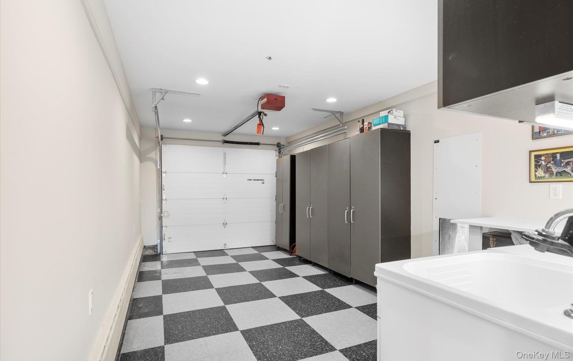 - Kitchen featuring dark flooring, a baseboard heating unit, light countertops, and recessed lighting