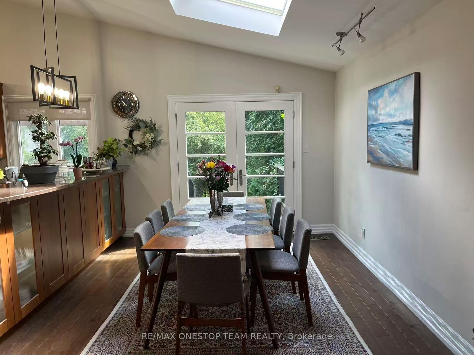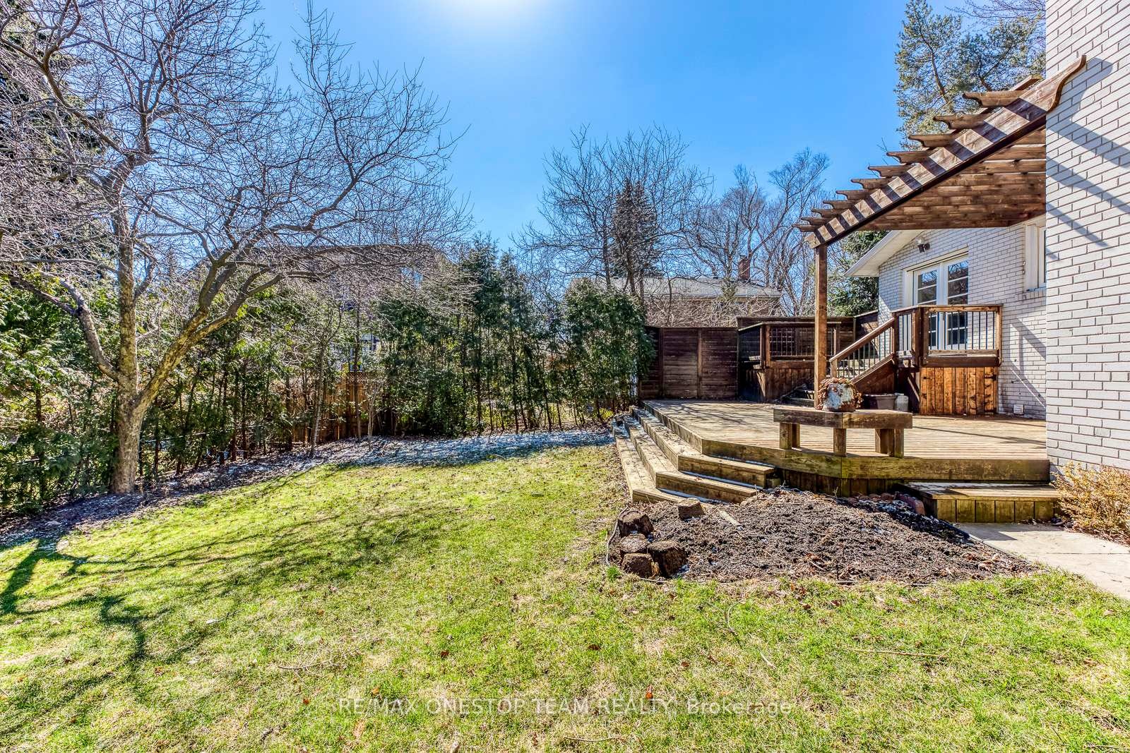 This beautiful residence boasts exceptional curb appeal with flagstone steps, a welcoming front porch, and lush, professionally landscaped grounds. Inside, the open-concept chefs kitchen offers abundant cabinetry, generous counter space, and top-of-the-line appliances perfect for everyday living and entertaining. The spacious family room features a walkout to a two-tier deck and covered veranda, extending your living space outdoors. Updated bathrooms add a touch of modern luxury, while the primary bedroom offers a wall-to-wall closet for ample storage. Additional highlights include an oversized laundry room, a versatile recreation area, and direct access from the double car garage. Ideally located near Owen Public School, top-rated schools, Bayview Village shopping, and just 5 minutes to Hwy 401 and the subway. Please notes exterior pictures of the property and interior staged pictures were taken in 2022 to reflect a similar condition of the house with expected normal wear and tear.