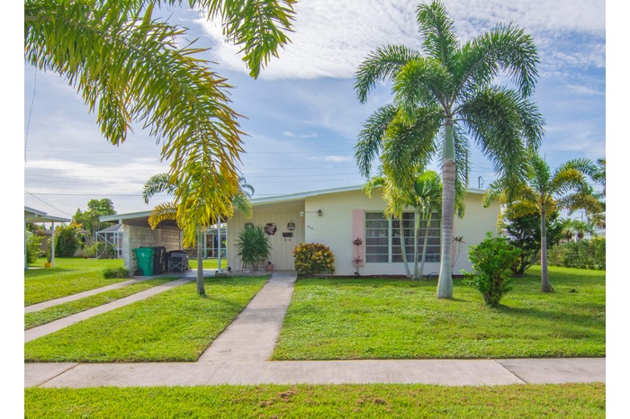 A Little Charmer in Sandpiper! 2 bedroom, 1 bathroom, CBS Home! Spacious Kitchen with Breakfast Bar for extra seating. Tile Throughout the Living room, Dining and Kitchen. Carpet in the Bedrooms. Laundry Room Located Inside. Nice Large Carport to Shade your car from the Florida Sun or Screen it in to add a nice Outdoor Living Area.Large Work Shed in the back with Electric!