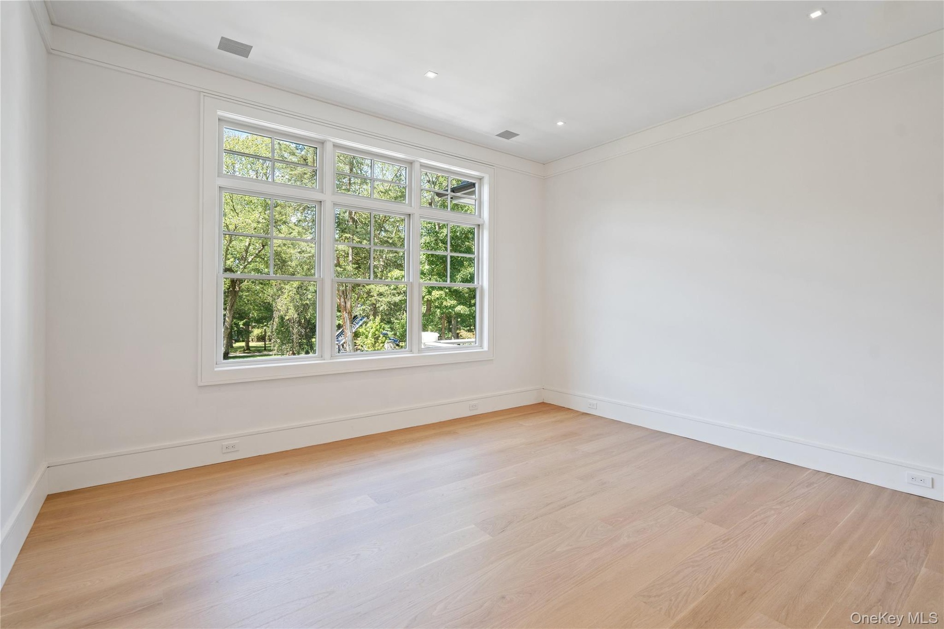 - Unfurnished room featuring light wood-type flooring and ornamental molding