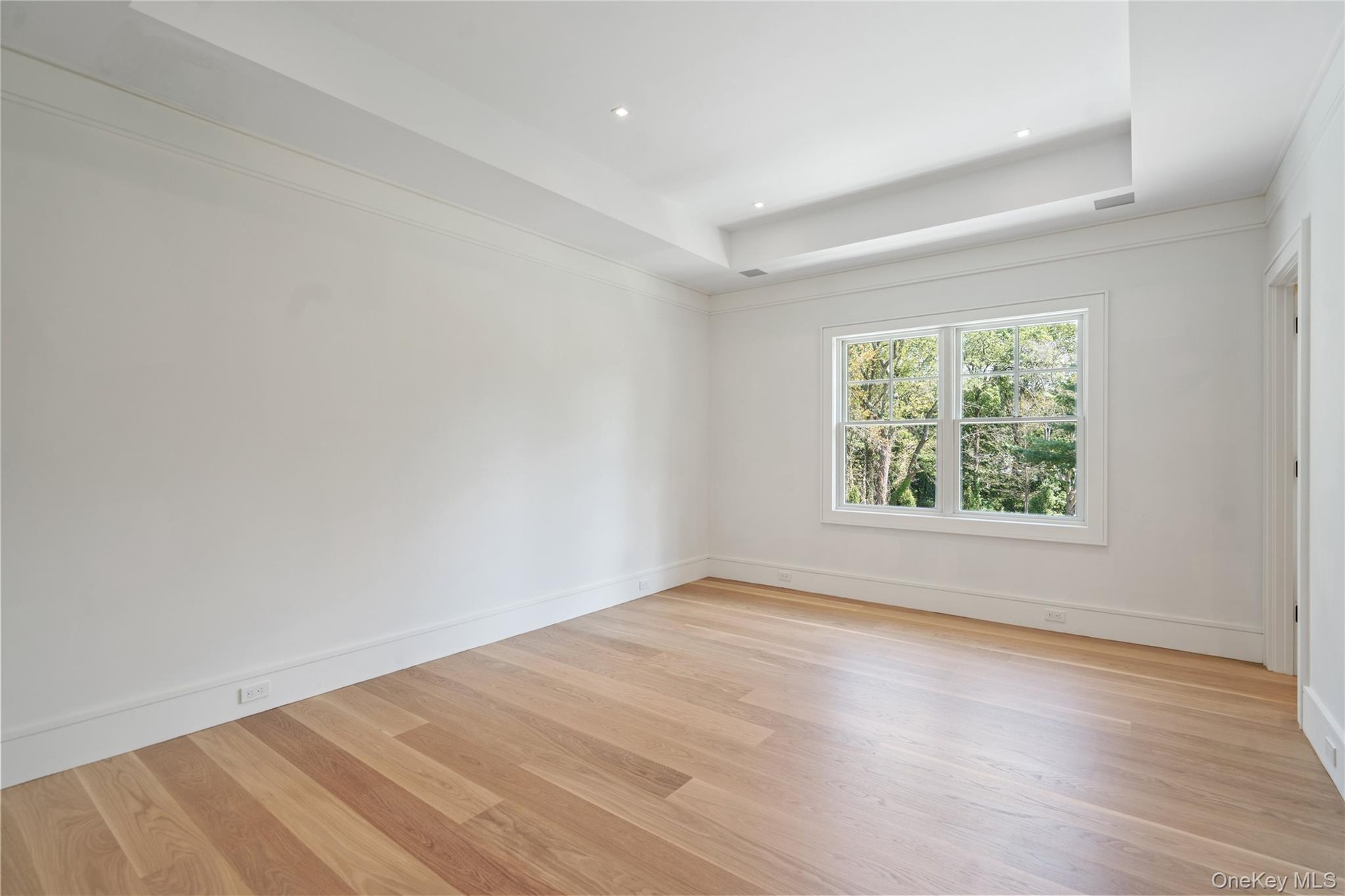 - Spare room with a raised ceiling, light wood finished floors, and recessed lighting