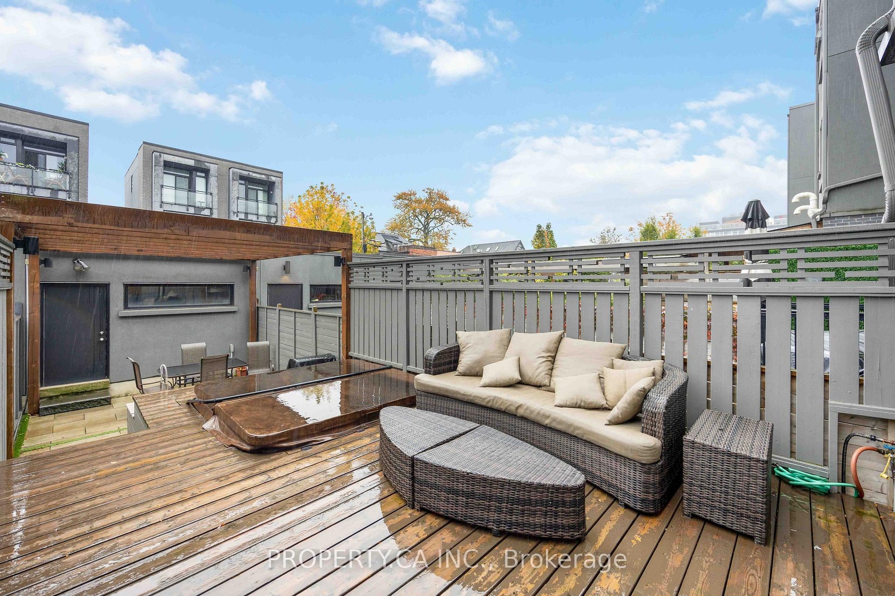 Welcome to 265 Roxton Road, A FULLY FURNISHED AND EQUIPPED Modern Executive Townhome In The Heart of Little Italy! With A Beautiful Open Concept Layout, Soaring Ceilings And Luxury Finishes Throughout, The 3 + 1 Bedrooms And 5 Bathrooms Make This Spacious Home Perfect For Families. Complete With Finished Basement, Ideal For A Home Office Or Nanny / In-Law Suite With Kitchen, Laundry Room, And Separate Entrance. Main Floor Is An Entertainer's Dream With Sleek Chef's Kitchen Overlooking Living Room With Built-in Shelving/Entertainment Unit And Walk-out To Backyard Oasis. The Private Sun Drenched Deck Comes Complete With A Built-in Hot Tub And Walkdown To Stone Patio With Wet Bar/BBQ And Eating Area. The Second Floor Features 2 Large Sized Bedrooms With Ensuite Washrooms and Laundry And The Third Floor Is A Full Floor Primary Suite With Stunning 5 pc Ensuite Retreat, Wet Bar, Huge Walk-In Closet and Private Rooftop Balcony. Perfect Location, Just A Short Walk To TTC, Parks, And The Best Shops, Cafes And Restaurants. Price Is For A 1 Year Fully Furnished Lease, Utilities Extra. Can Also Be Leased On A Short Term Basis With Utilities Included For Extra Cost Depending On Term.