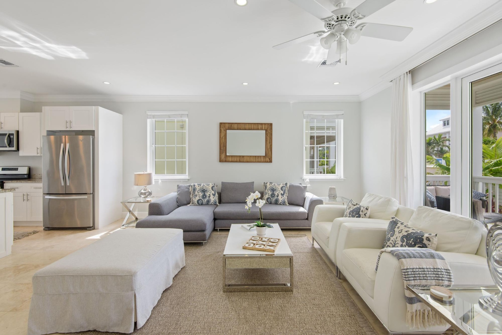 Welcome home to this delightful, 3-bedroom end unit residence in the highly desirable community of Starfish Isle in Palm Cay. With a superior location just steps from the beach and the two swimming pools, this turnkey home features a comfortable open plan layout on two levels. The ground floor accommodates the spacious living room, gourmet kitchen, laundry room, storage room, half bath and dining area with views of the pool to the sea beyond. Upstairs are three bedrooms including a tranquil master suite with walk-in closet and private balcony. Palm Cay blends island living with coveted amenities including a lovely beach, swimming pools, tennis and pickle ball courts, putting green, children's playground, restaurant, gym, spa and fully serviced marina within a gated beachfront community. Within easy proximity to shopping and St. Andrews International School, this community attracts homeowners, long-term tenants and vacation rental guests. Price is US$