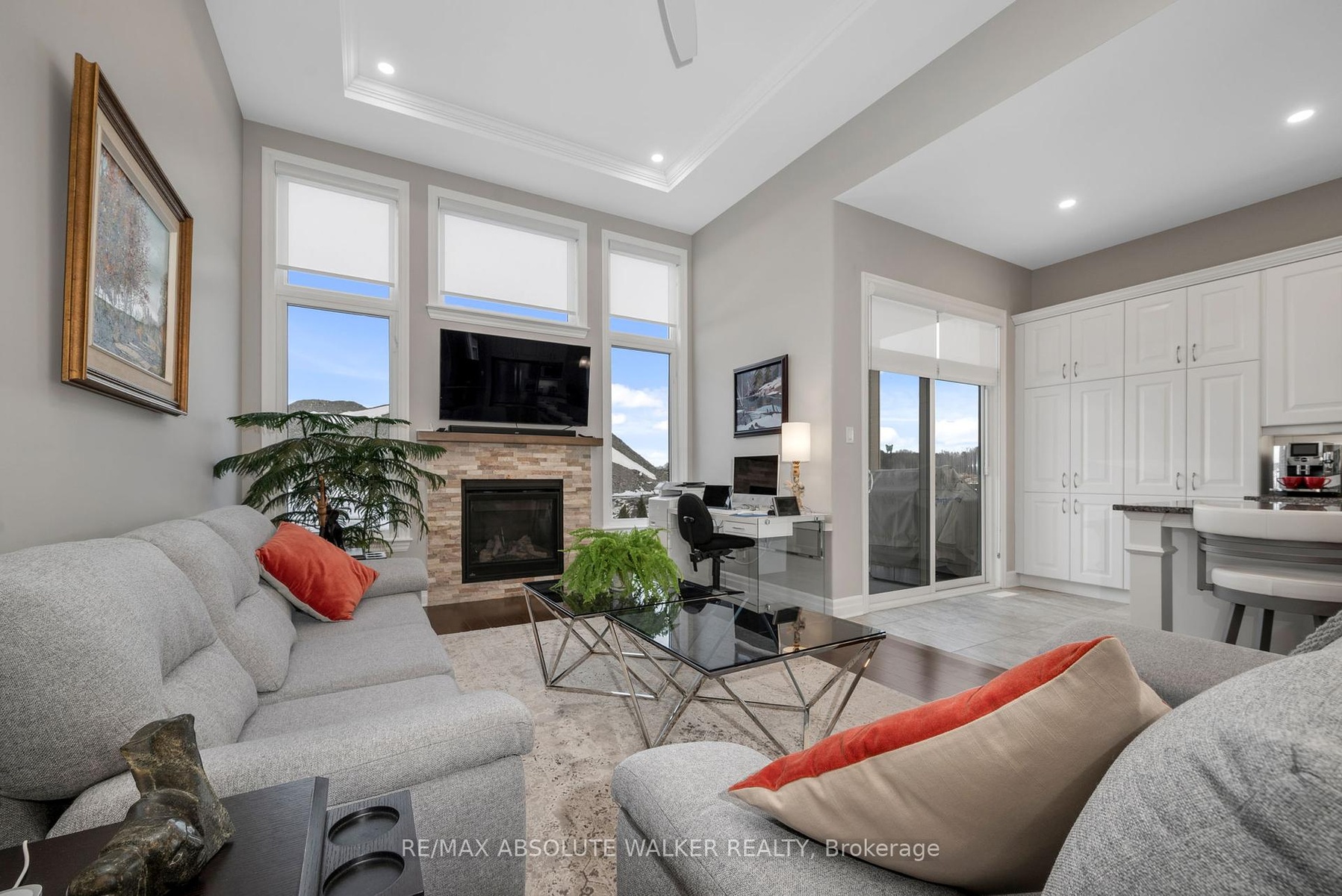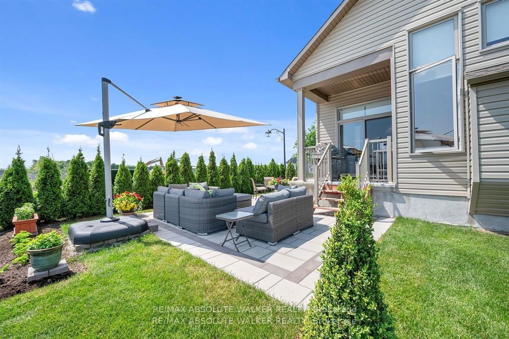 Experience refined design and modern comfort in this beautifully appointed 3-bedroom bungalow, perfectly set on a premium corner lot with beautiful curb appeal. From the moment you step inside, elegant finishes and a thoughtfully crafted layout set this home apart. Entertain with ease in the inviting parlour, where cathedral ceilings and expansive windows with motorized blinds fill the space with natural light and flow seamlessly into the formal dining room. The chef-inspired kitchen is a true centrepiece, showcasing winter white cabinetry, subway tile backsplash, granite countertops, an oversized island, and a full extended wall pantry-all complemented by high-end stainless steel appliances. The adjoining family room offers the perfect place to unwind, highlighted by soaring 12-ft coffered ceilings, a cozy gas fireplace, and additional motorized blinds for both comfort and style. Hardwood and tile flooring extend throughout, adding warmth and sophistication to every space. The primary suite provides a private retreat, complete with a walk-in closet and a spa-like ensuite featuring heated floors, dual sinks, a glass shower, and a luxurious soaker tub. Two additional bedrooms offer versatility for guests, family, or a home office. Step outside to enjoy a covered rear porch with a gas line, extending to a brand-new interlock patio- ideal for BBQs, entertaining, or peaceful evenings outdoors.