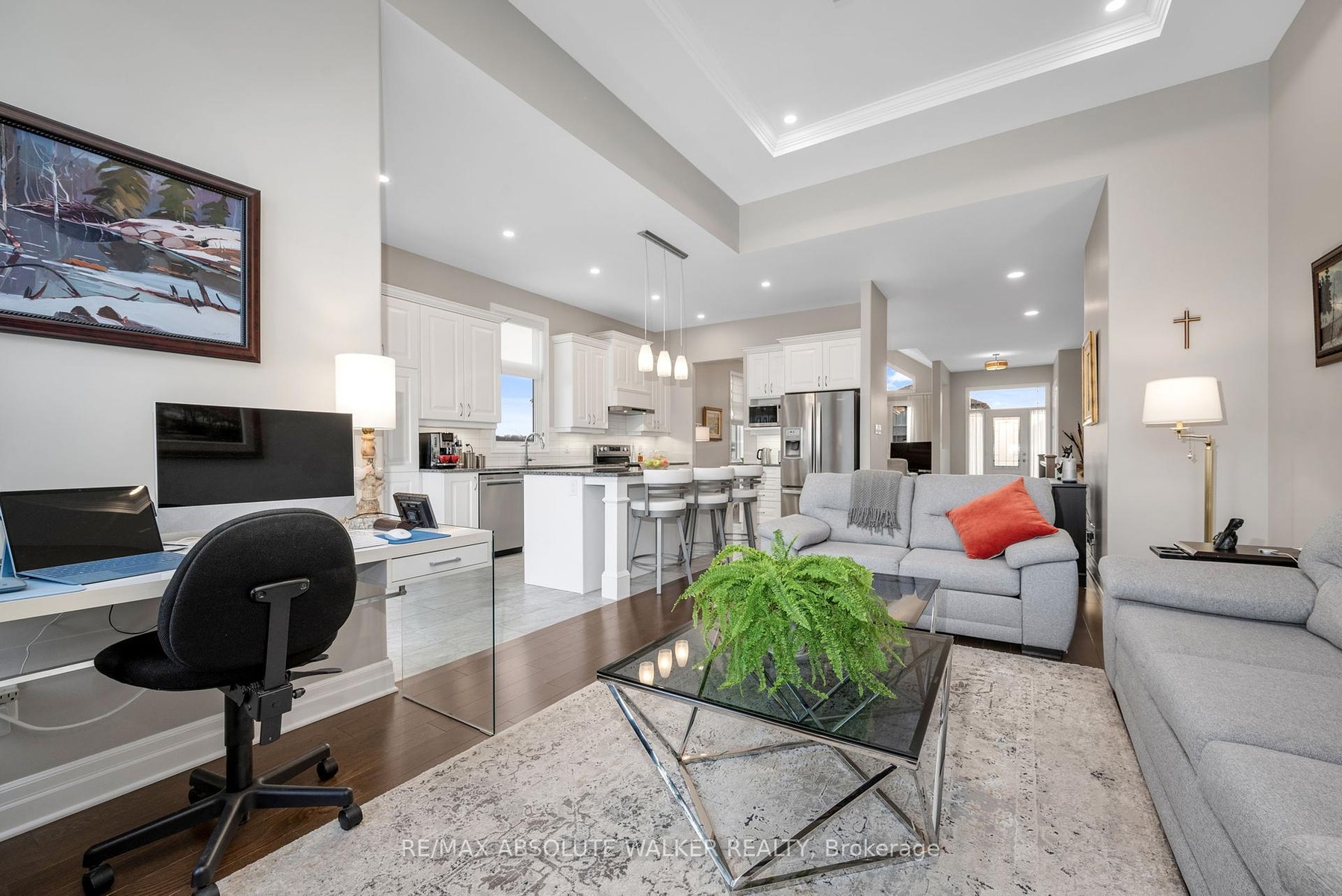 DescriptionExperience refined design and modern comfort in this beautifully appointed 3-bedroom bungalow, perfectly set on a premium corner lot with beautiful curb appeal. From the moment you step inside, elegant finishes and a thoughtfully crafted layout set this home apart. Entertain with ease in the inviting parlour, where cathedral ceilings and expansive windows with motorized blinds fill the space with natural light and flow seamlessly into the formal dining room. The chef-inspired kitchen is a true centrepiece, showcasing winter white cabinetry, subway tile backsplash, granite countertops, an oversized island, and a full extended wall pantry-all complemented by high-end stainless steel appliances. The adjoining family room offers the perfect place to unwind, highlighted by soaring 12-ft coffered ceilings, a cozy gas fireplace, and additional motorized blinds for both comfort and style. Hardwood and tile flooring extend throughout, adding warmth and sophistication to every space. The primary suite provides a private retreat, complete with a walk-in closet and a spa-like ensuite featuring heated floors, dual sinks, a glass shower, and a luxurious soaker tub. Two additional bedrooms offer versatility for guests, family, or a home office. Step outside to enjoy a covered rear porch with a gas line, extending to a brand-new interlock patio- ideal for BBQs, entertaining, or peaceful evenings outdoors.Amenities- Air Exchanger