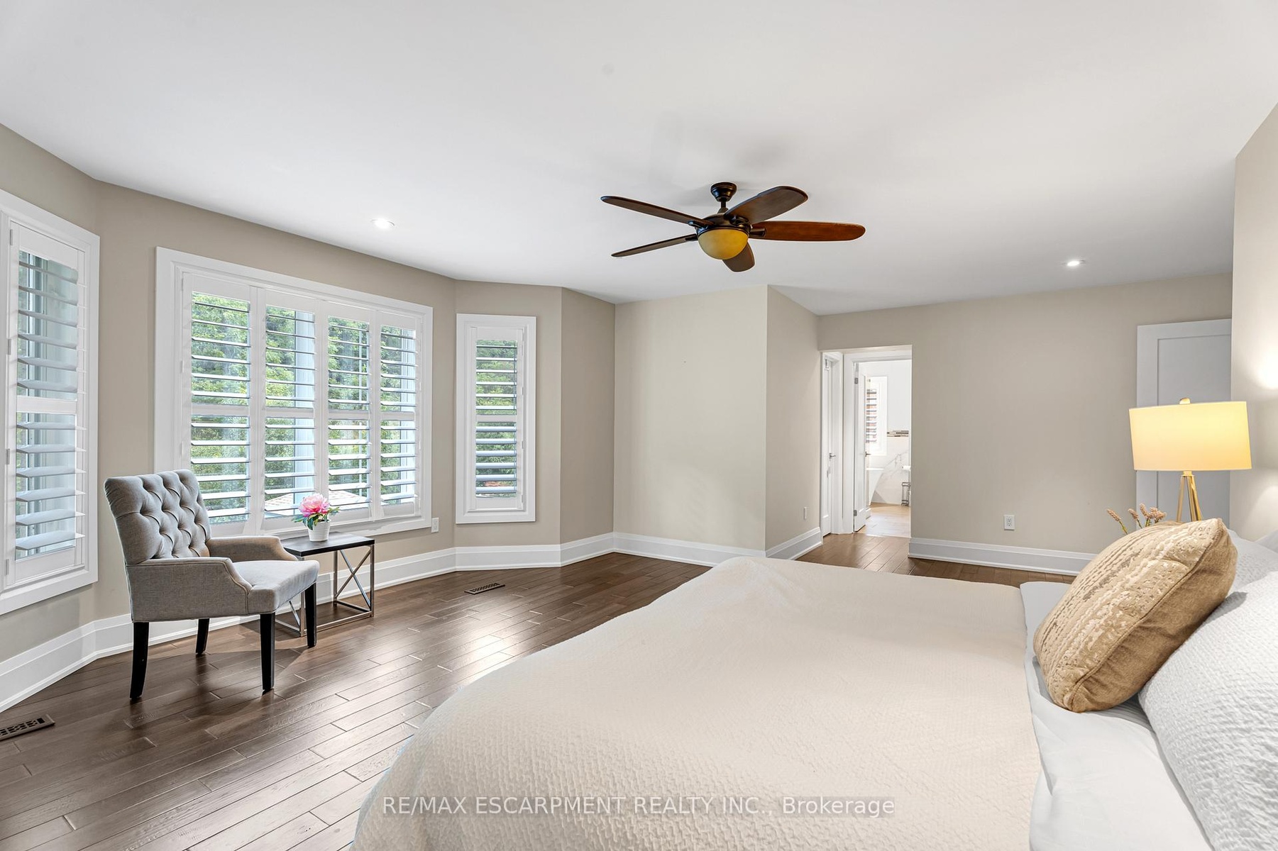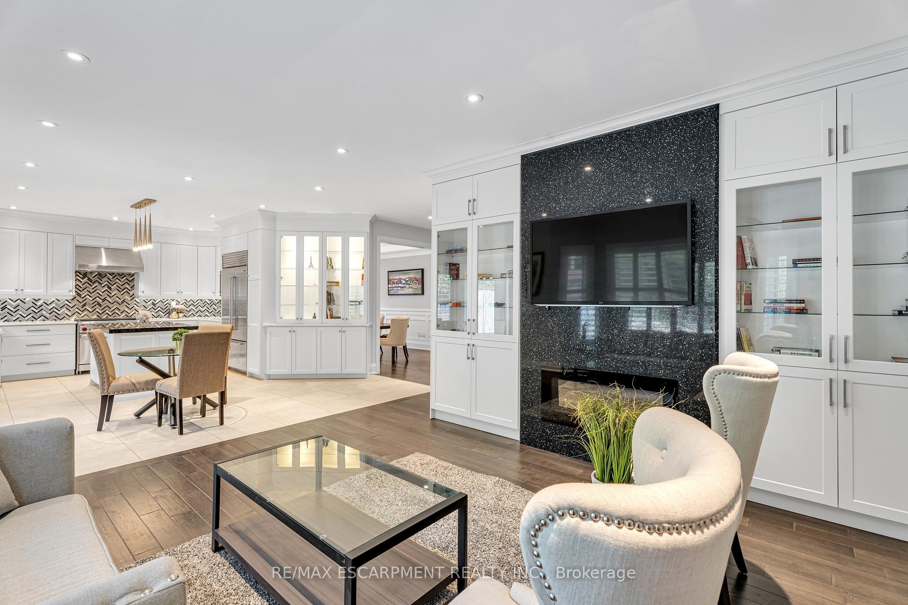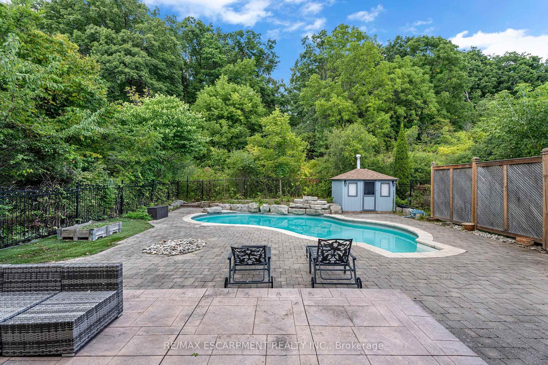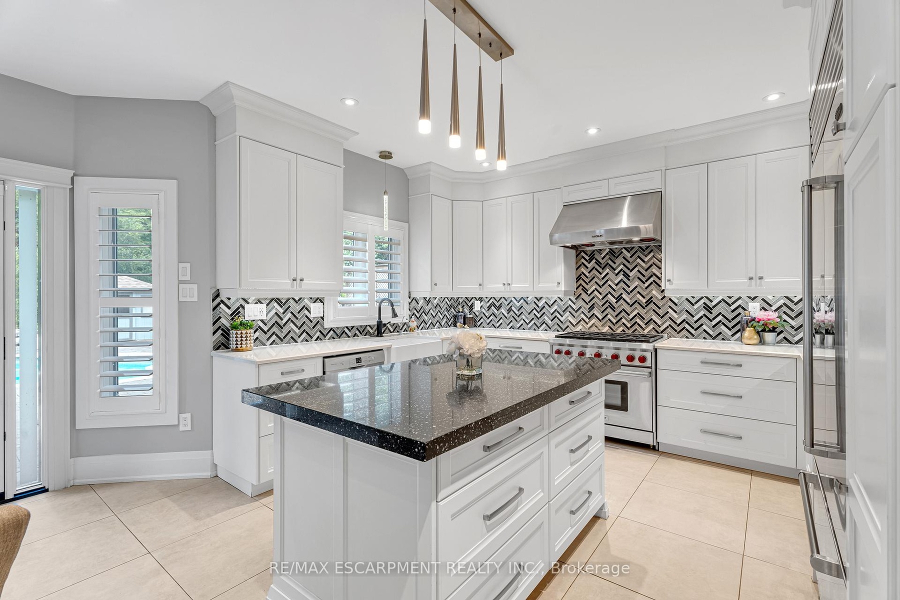 Nestled on a quiet street in one of Dundas most desirable neighbourhoods, this impressive 5+2 bedroom (plus multiple dens), 5.5 bath two-storey home offers over 4,600 sq. ft. of finished living space backing onto lush green space. The primary suite extends across the entire back of the house with views of the back yard and green space. As a rare addition, each bedroom has access to an ensuite bath. Designed with family living and entertaining in mind, the home features a beautifully renovated kitchen, adorned with Wolf and Sub-Zero appliances, that flows seamlessly into the expansive principal rooms. The fully finished lower level adds incredible versatility with additional bedrooms and recreation space. Step outside to a deep, private lot highlighted by a large in-ground pool, mature trees, and multiple sitting areas perfect for hosting gatherings or relaxing in total privacy. With three levels of stunningly finished space, theres room for every lifestyle whether accommodating extended family, creating dedicated work spaces, or providing the ultimate entertainment hub. This rare offering combines tranquility, privacy, and convenience in the heart of everything Dundas offers. Updates: Sump Pump battery backup (24), Smart Home Lighting (Lutron), EV Charger in garage, Pool Liner (21), Pool Lines to shed (22), Sand Filter and Pump (25).