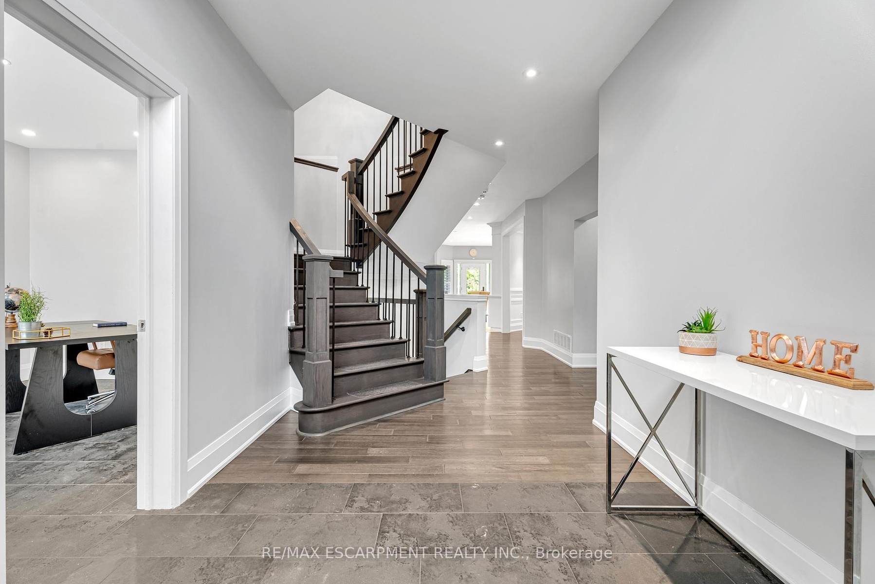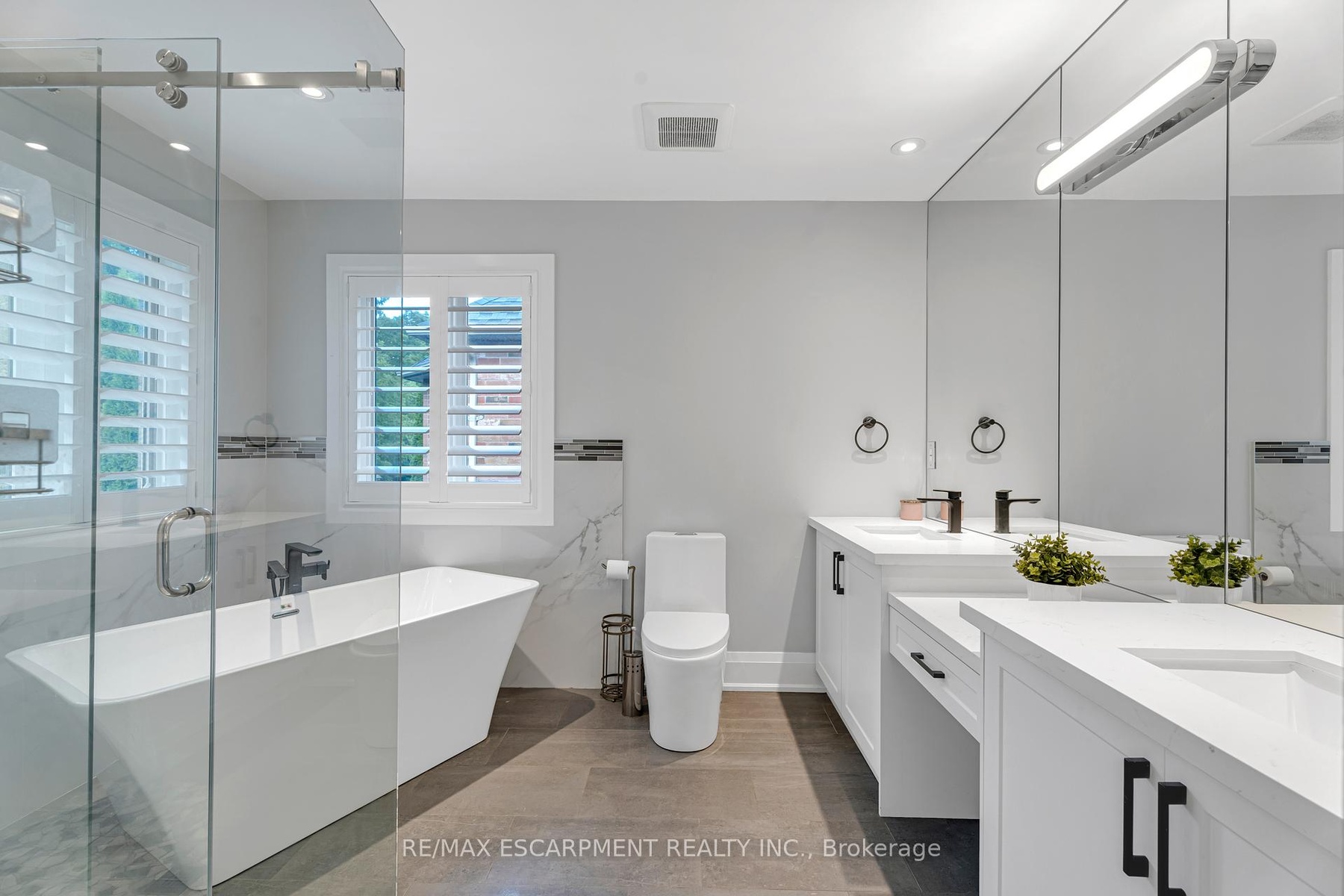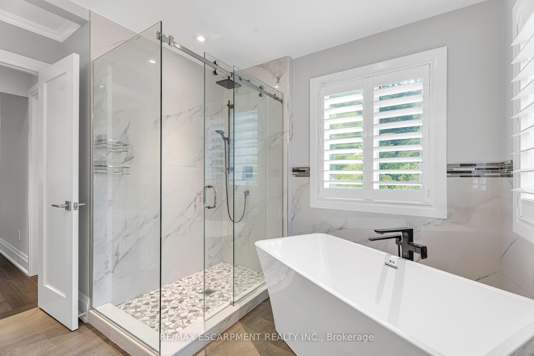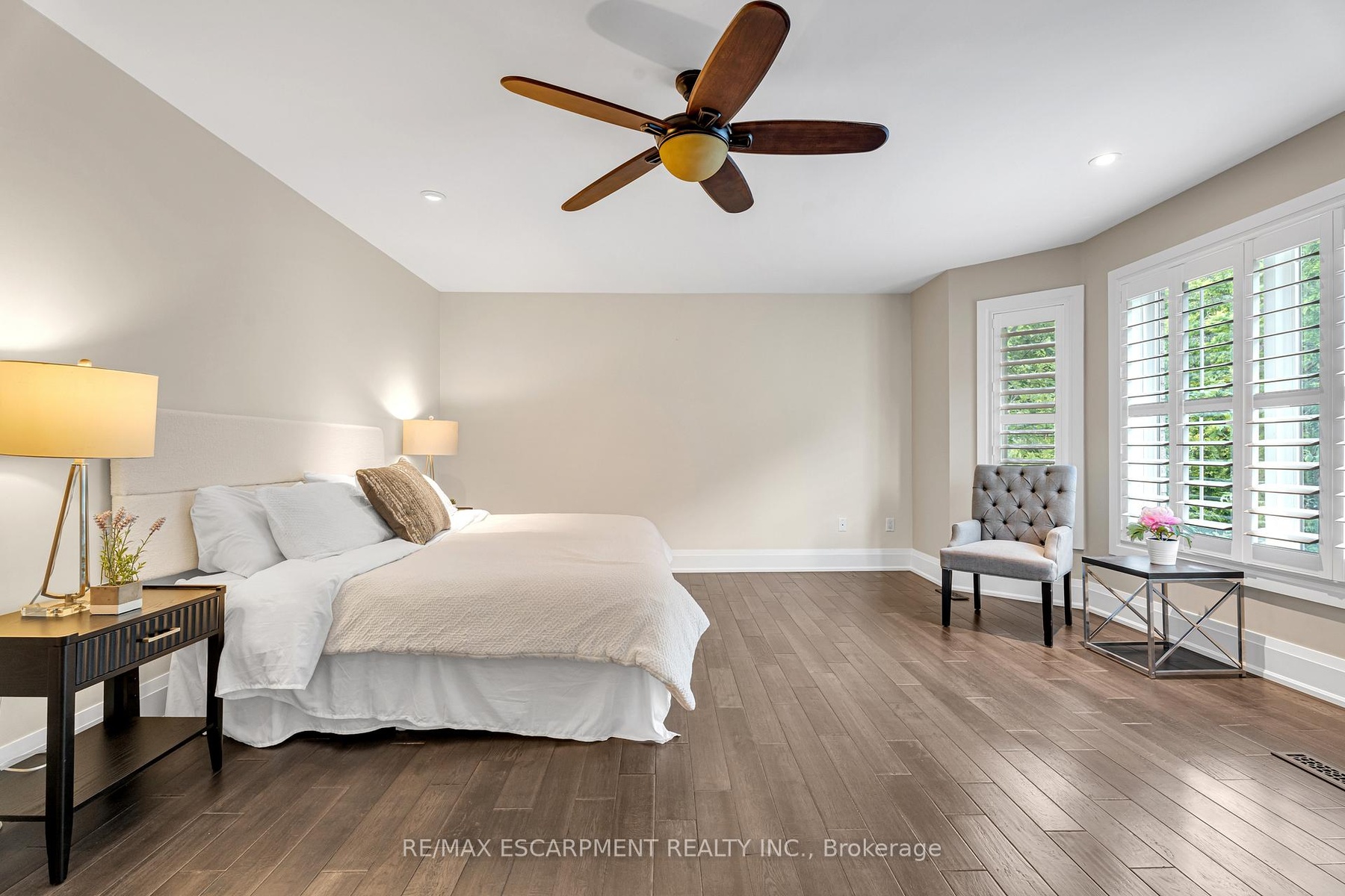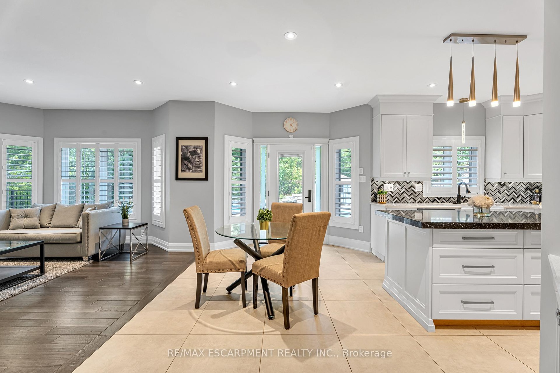 Nestled on a quiet street in one of Dundas most desirable neighbourhoods, this impressive 5+2 bedroom (plus multiple dens), 5.5 bath two-storey home offers over 4,600 sq. ft. of finished living space backing onto lush green space. The primary suite extends across the entire back of the house with views of the back yard and green space. As a rare addition, each bedroom has access to an ensuite bath. Designed with family living and entertaining in mind, the home features a beautifully renovated kitchen, adorned with Wolf and Sub-Zero appliances, that flows seamlessly into the expansive principal rooms. The fully finished lower level adds incredible versatility with additional bedrooms and recreation space. Step outside to a deep, private lot highlighted by a large in-ground pool, mature trees, and multiple sitting areas perfect for hosting gatherings or relaxing in total privacy. With three levels of stunningly finished space, theres room for every lifestyle whether accommodating extended family, creating dedicated work spaces, or providing the ultimate entertainment hub. This rare offering combines tranquility, privacy, and convenience in the heart of everything Dundas offers. Updates: Sump Pump battery backup (24), Smart Home Lighting (Lutron), EV Charger in garage, Pool Liner (21), Pool Lines to shed (22), Sand Filter and Pump (25).