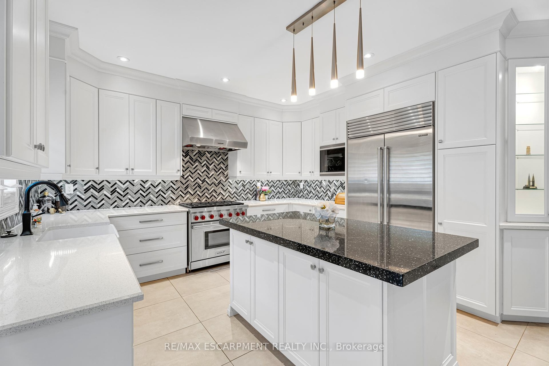 DescriptionNestled on a quiet street in one of Dundas most desirable neighbourhoods, this impressive 5+2 bedroom (plus multiple dens), 5.5 bath two-storey home offers over 4,600 sq. ft. of finished living space backing onto lush green space. The primary suite extends across the entire back of the house with views of the back yard and green space. As a rare addition, each bedroom has access to an ensuite bath. Designed with family living and entertaining in mind, the home features a beautifully renovated kitchen, adorned with Wolf and Sub-Zero appliances, that flows seamlessly into the expansive principal rooms. The fully finished lower level adds incredible versatility with additional bedrooms and recreation space. Step outside to a deep, private lot highlighted by a large in-ground pool, mature trees, and multiple sitting areas perfect for hosting gatherings or relaxing in total privacy. With three levels of stunningly finished space, theres room for every lifestyle whether accommodating extended family, creating dedicated work spaces, or providing the ultimate entertainment hub. This rare offering combines tranquility, privacy, and convenience in the heart of everything Dundas offers. Updates: Sump Pump battery backup (24), Smart Home Lighting (Lutron), EV Charger in garage, Pool Liner (21), Pool Lines to shed (22), Sand Filter and Pump (25).