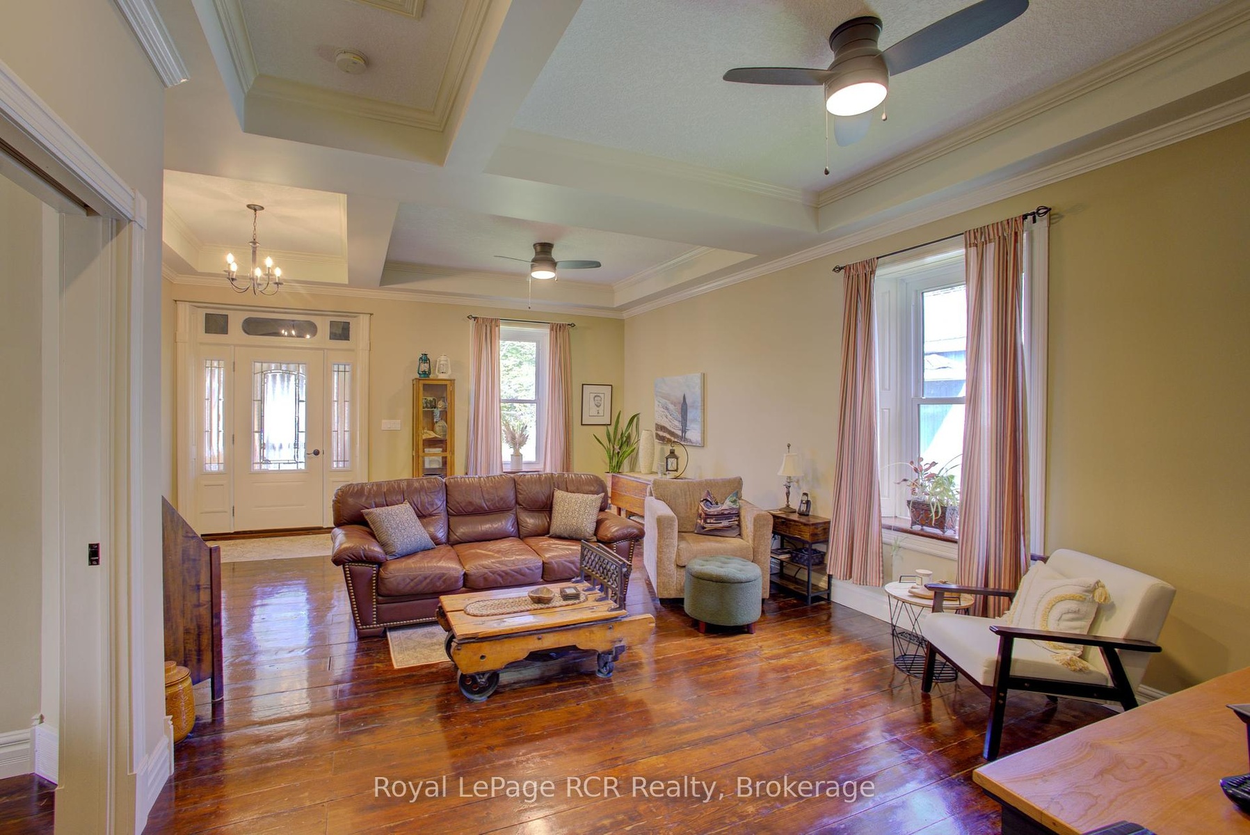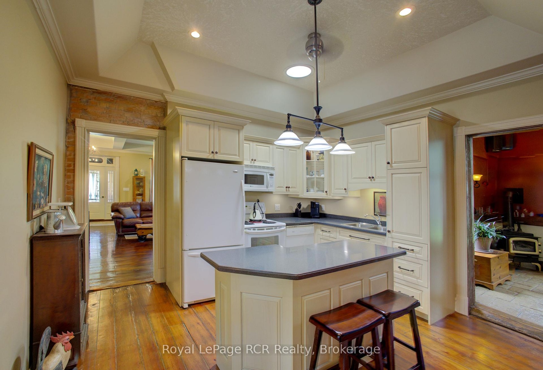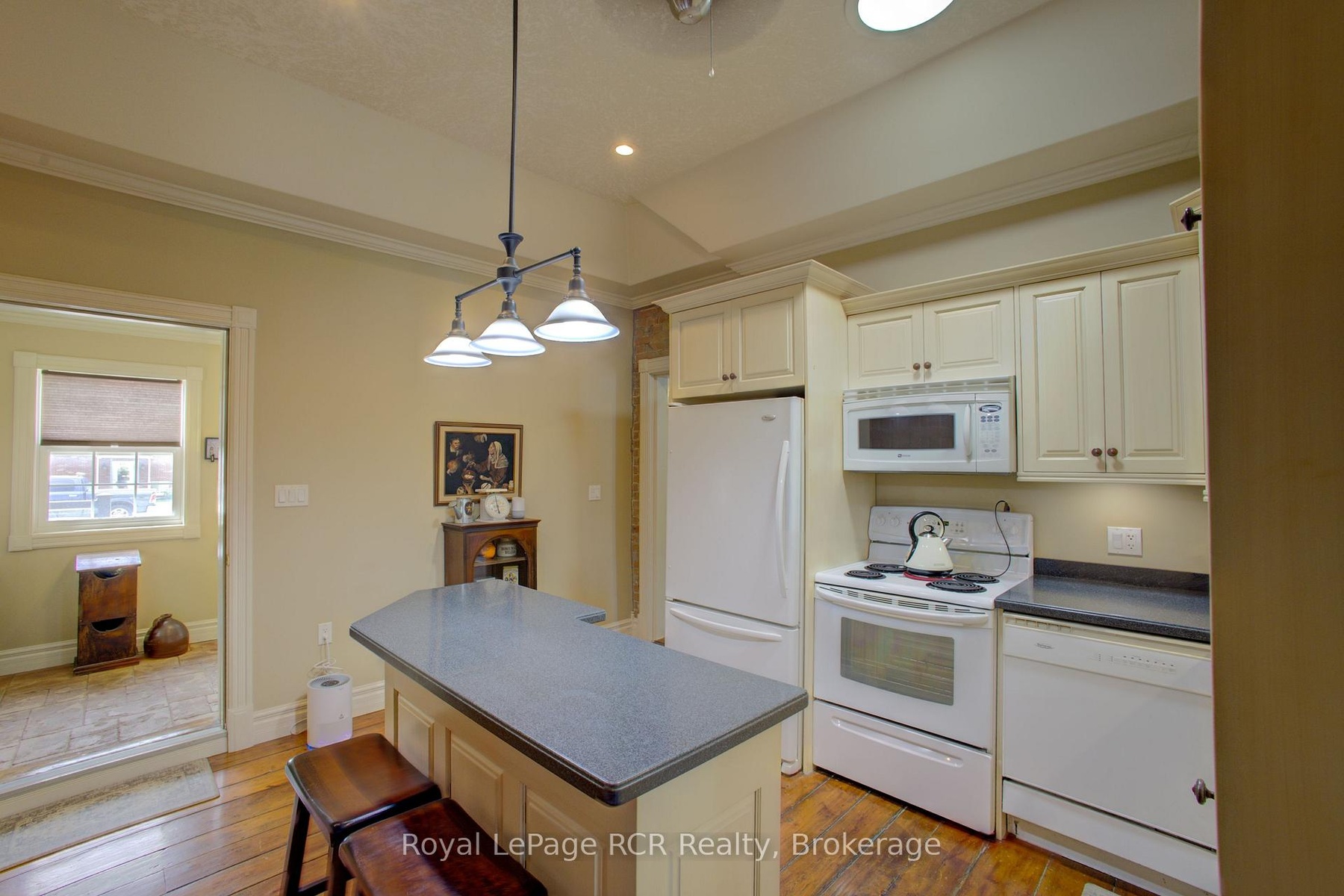 Nicely renovated and updated brick bungalow, located in the heart of Arthur. This must see 1880's historic home has loads of charm and character throughout, with high ceilings, original wood floors and more, along with modern amenities. Major updates include new wiring, plumbing, re-insulated, some in floor heating, all the work has been done here. Just move in! The detached 26'x36' heated workshop/garage with loft storage, is ideal for the handyman or car enthusiast. The corner lot location offers 2 driveways, with lots of parking. The prime location is within walking distance to downtown shopping, churches, schools and rec facilities. Make the move to Arthur!