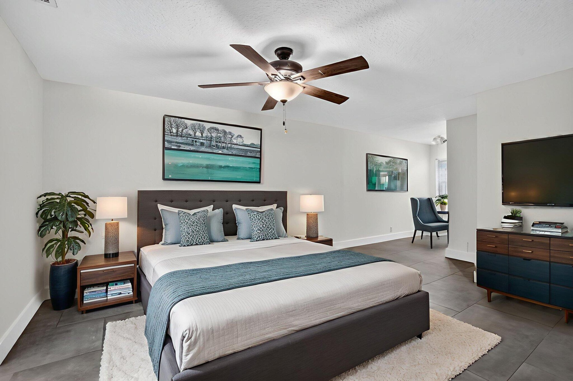 Totally remodeled single-family home in the sought-after gated community of Rainberry Bay! This light-filled residence features brand new large porcelain tile floors throughout, a stunning new kitchen with quartz counters, custom backsplash, and updated bathrooms. Enjoy peace of mind with a roof maintained by the HOA, an A/C replaced in 2021, and plantation shutters on most windows. The home offers a spacious Florida room, a two-car garage, and a large fenced yard--perfect for relaxing or entertaining. Rainberry Bay is pet friendly (2 pets, up to 30 lbs each) and offers a vibrant lifestyle with incredible amenities, all just minutes from Downtown Delray and the beach!