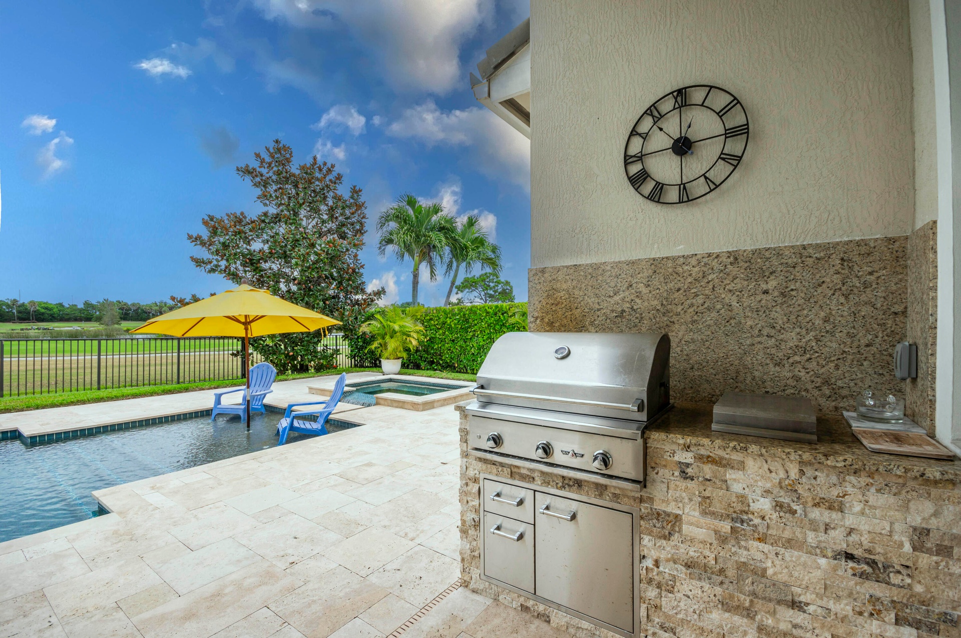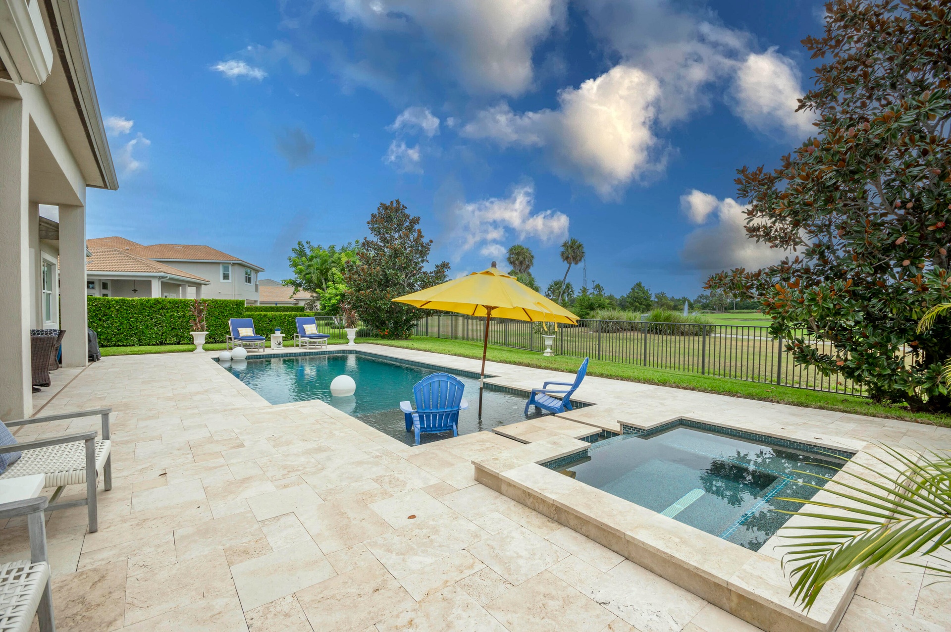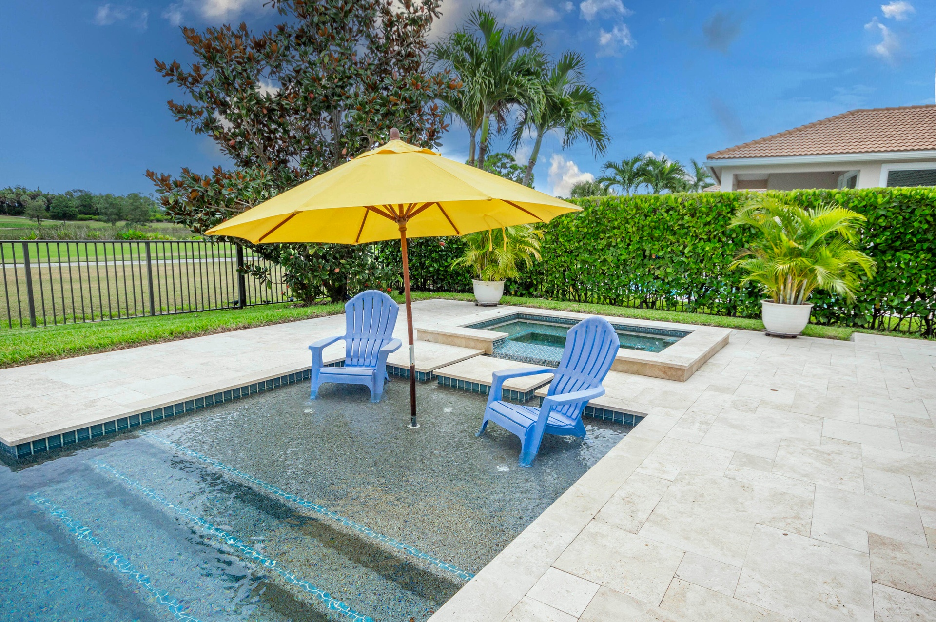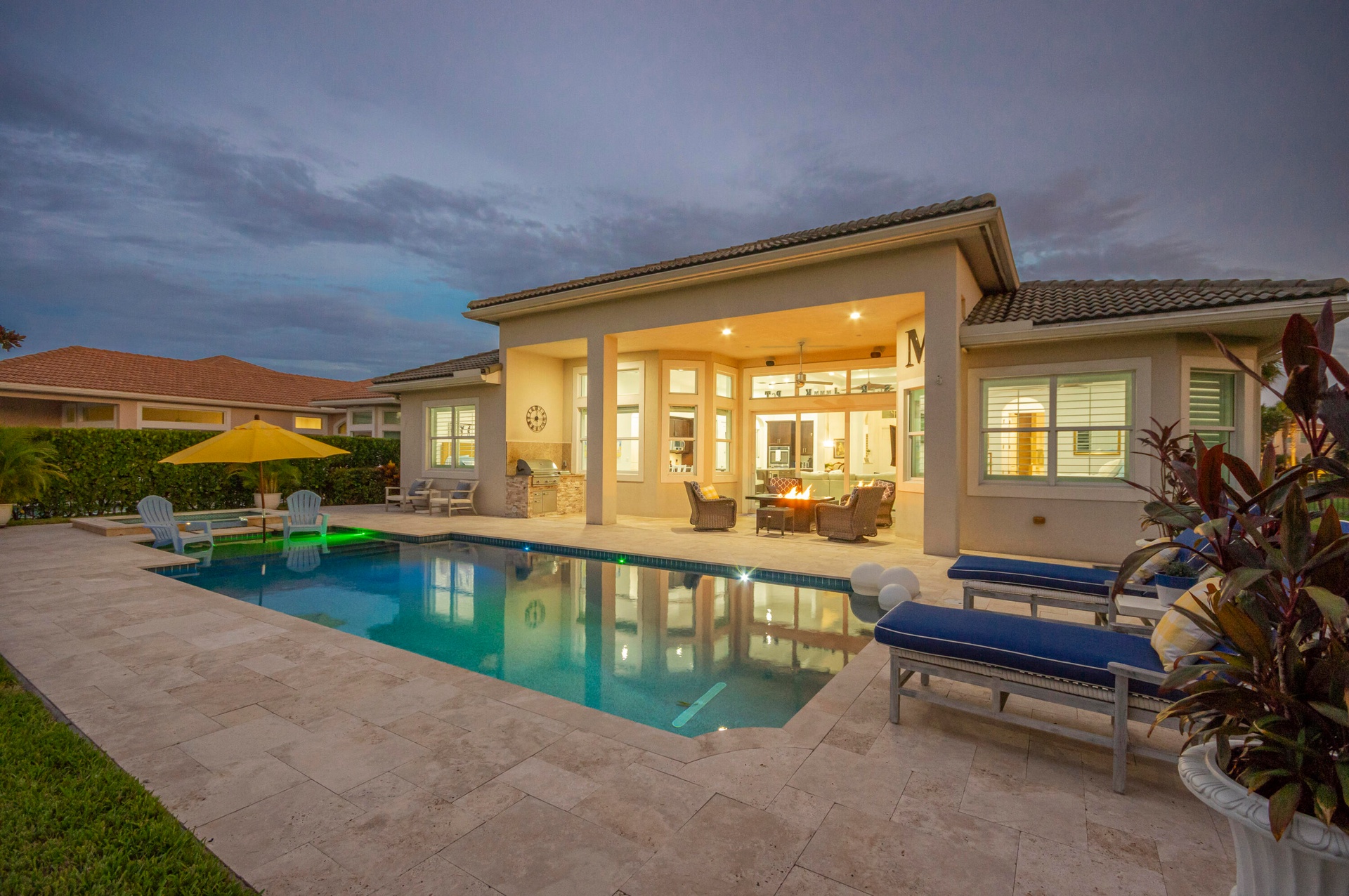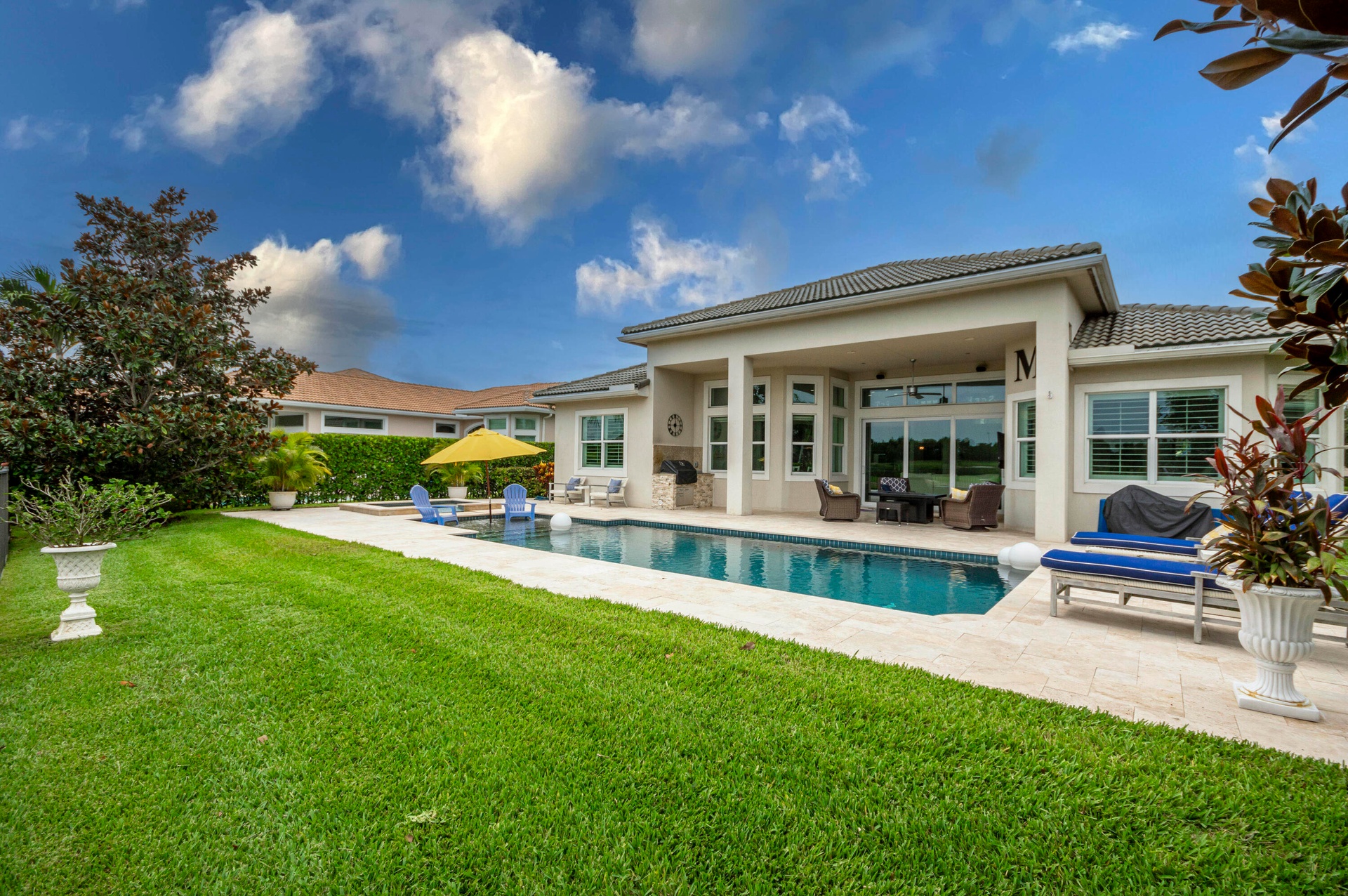 Live luxuriously comfortably in this single level Beaumont model with an ultra private homesite in the resort style gated community of Jupiter Country Club.