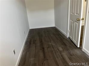 - Below grade area with dark wood finished floors and a garage