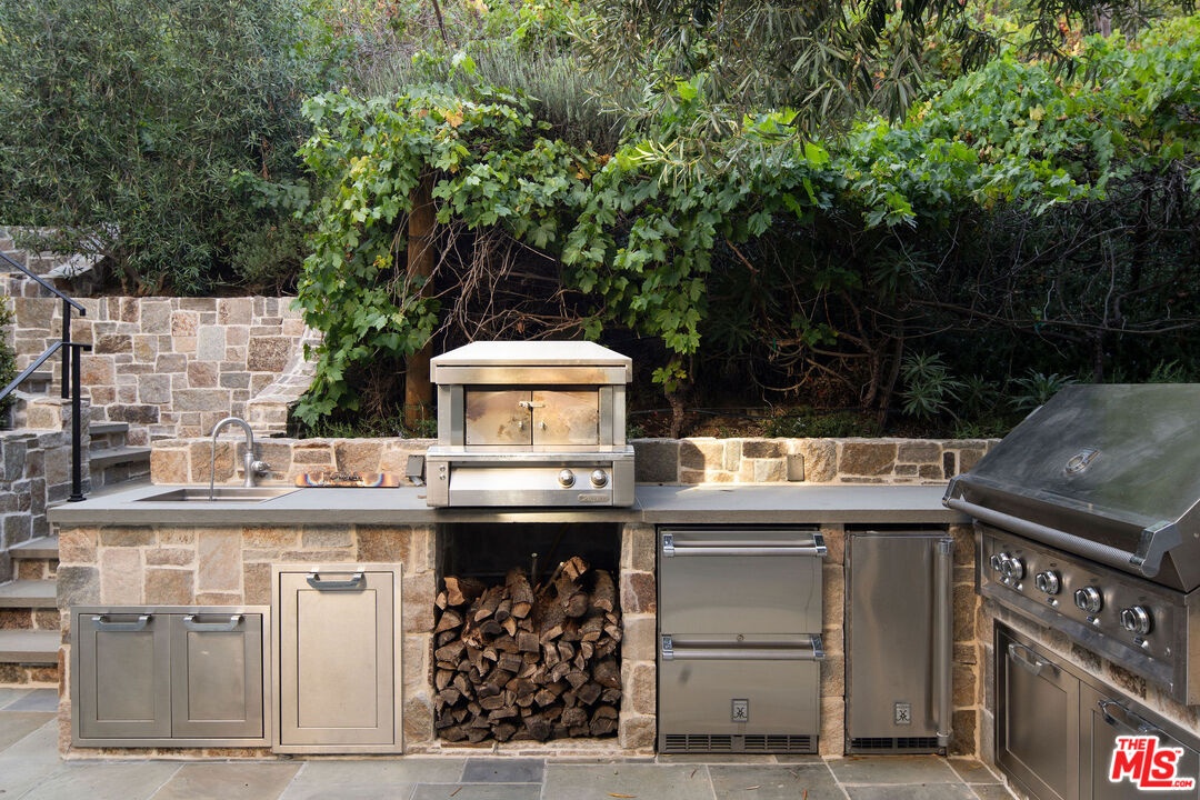 Step behind a discreet gate into a private oasis. A gentle stream sets a calming tone as views open to nearly an acre of park-like grounds. Stone pathways lead to beautiful yards for relaxation and play, a sports court, a gorgeous pool area with spa and guest house. The main residence, reimagined with Maurice Gadson Design, embodies simplicity, beauty, and craftsmanship. The dramatic living room and kitchen with soaring ceilings and seamless garden access are the heart of the home. The custom wood paneled media room and secondary family room were designed for comfort and flexible living. Every detail speaks of curation: Samuel Heath and Waterworks fixtures, vintage French lighting, textiles by Holly Hunt, Thomas Lavin, Schumacher, Missoni runners, Calcutta stone, custom millwork, and Christian Lacroix wallpaper. Smart automation and tailored shades complete the experience. The outdoor kitchen and dining area with views of your very own vineyard elevate one's entertaining experience and evenings by the outdoor fireplace brings birdsong, owl calls, and absolute tranquility. Boca de Canon is a setting that truly cannot be replicated.