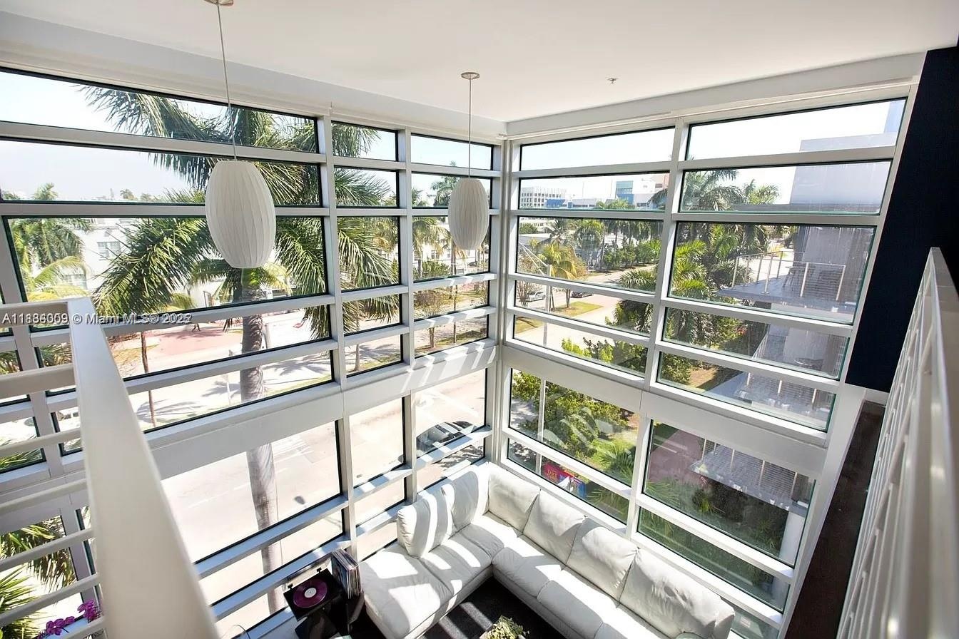 Attention Investors! Three-level penthouse with private terraces and 360° views in the exclusive South of Fifth. Brand new L-shaped staircase. Soaring 20-foot ceilings fill the living area with natural light. Modern kitchen with stainless steel appliances and quartz countertops. One bedroom + full bath on the main level, primary suite with private terrace on the second, and rooftop terrace on the third. Boutique building with only 20 units and a sun-filled pool. Covered parking, washer/dryer. Can be rented up to 12 times/year. Tenant occupied, rented at 6,500usd monthly