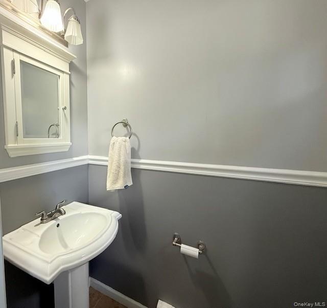 - Bathroom with baseboards and a sink