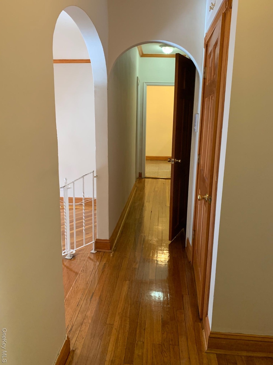 - Corridor with hardwood / wood-style flooring and arched walkways