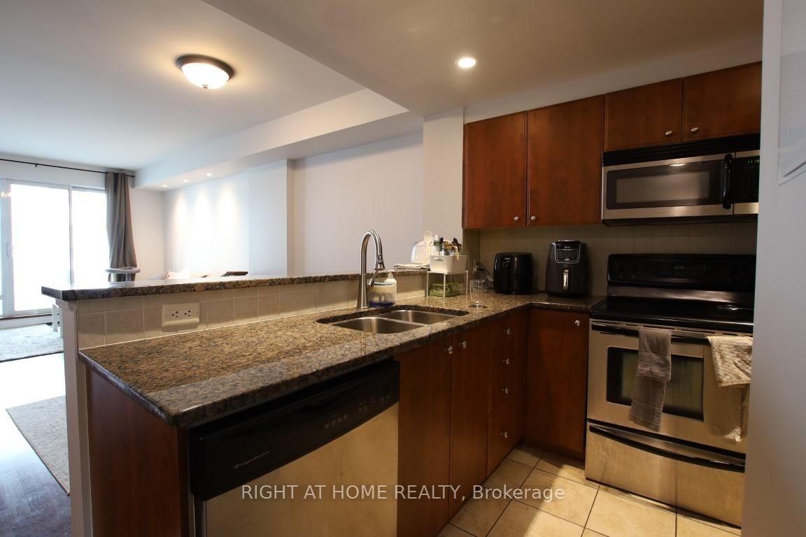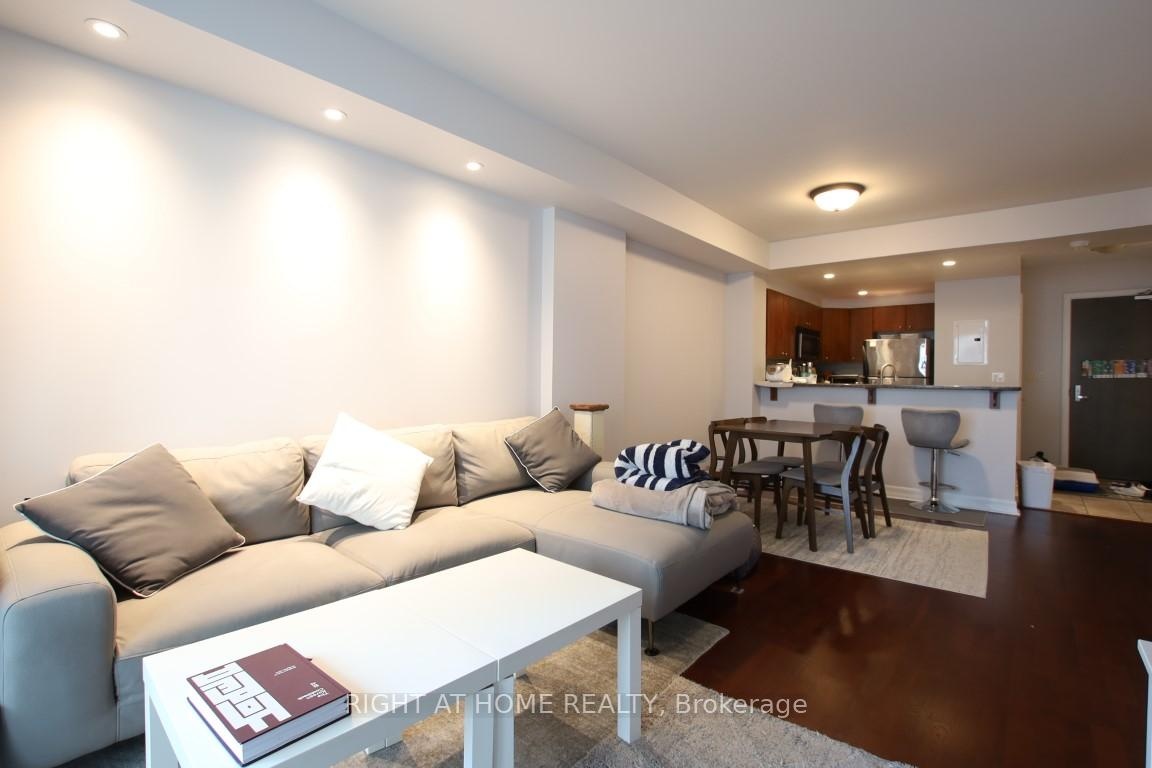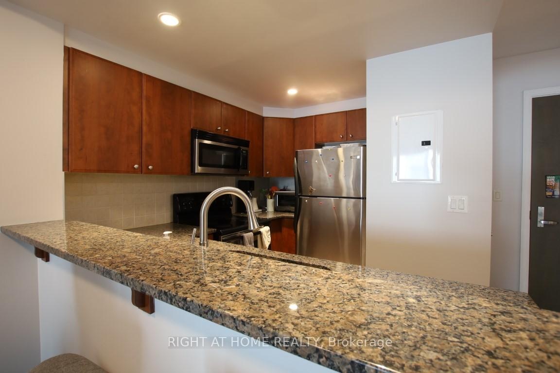 Bright and beautifully upgraded 745 sq/ft. 1 bedroom + den, 1 bathroom condo, ideally located in the heart of downtown Ottawa. This modern unit offers both comfort and convenience. Enjoy high-end finishes throughout, including engineered hardwood and ceramic flooring, granite countertops, and a spacious open-concept layout. The kitchen features a breakfast bar, SS appliances, and plenty of cabinet space. Relax on your private balcony (not shared!), or unwind in the generously sized primary bedroom with two closets and direct access to the 4-piece bathroom. The versatile den is perfect as a home office or guest space. Additional highlights include in-unit laundry and a separate storage locker. Residents enjoy an impressive suite of amenities: Indoor pool, Sauna, Fitness centre with showers & change rooms, Spacious patio with lounge chairs and BBQs. Steps from the ByWard Market, Rideau Centre, Parliament Hill, University of Ottawa, Shaw Centre. This lovely condo comes with one parking spot and a locker. Just move in and enjoy the best of urban living!