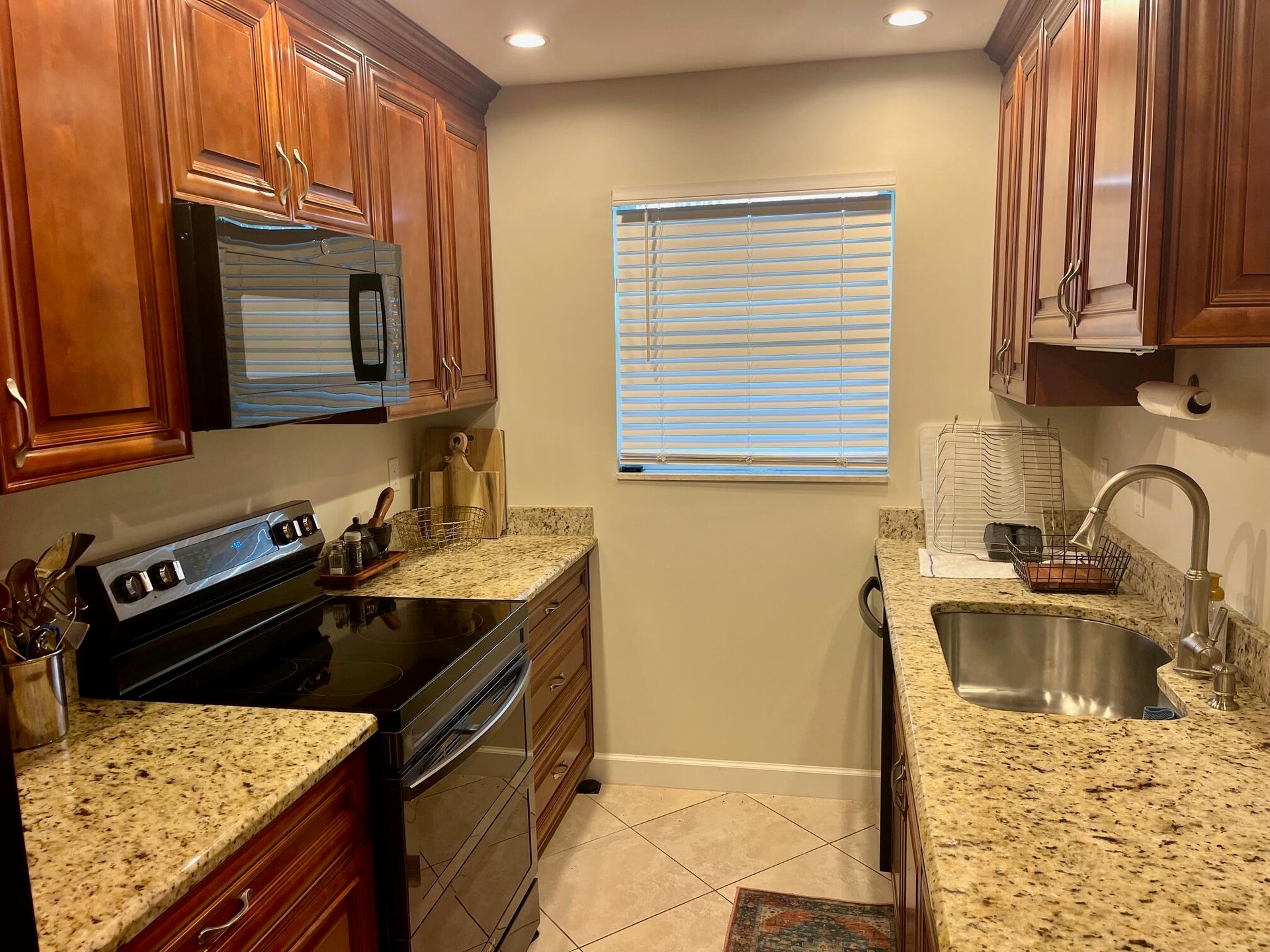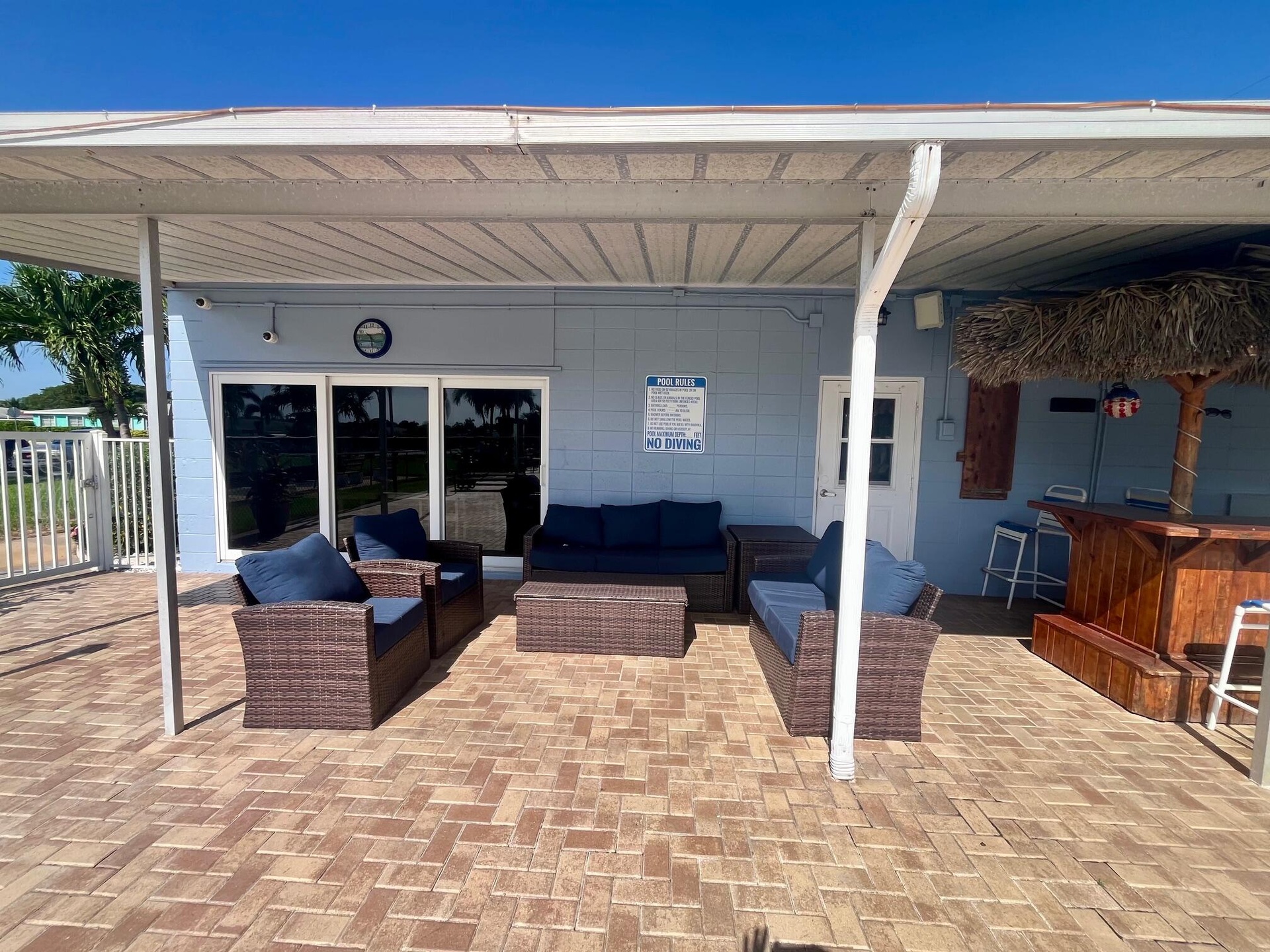 DescriptionThis charming 2 bedroom, 2 full bath villa is a corner unit. Has a remodeled kitchen with new granite counter tops, and newer stainless steel appliances. Kitchen has extra cabinets for extra storage. Updated master bathroom. Patio has a covered canopy for those days you want to sit outside and enjoy the Florida weather, but not be in the sun. Furniture is negotiable, which makes it one last thing you have to shop for. Near amenities, and just minutes from shopping, restaurants and the beach.