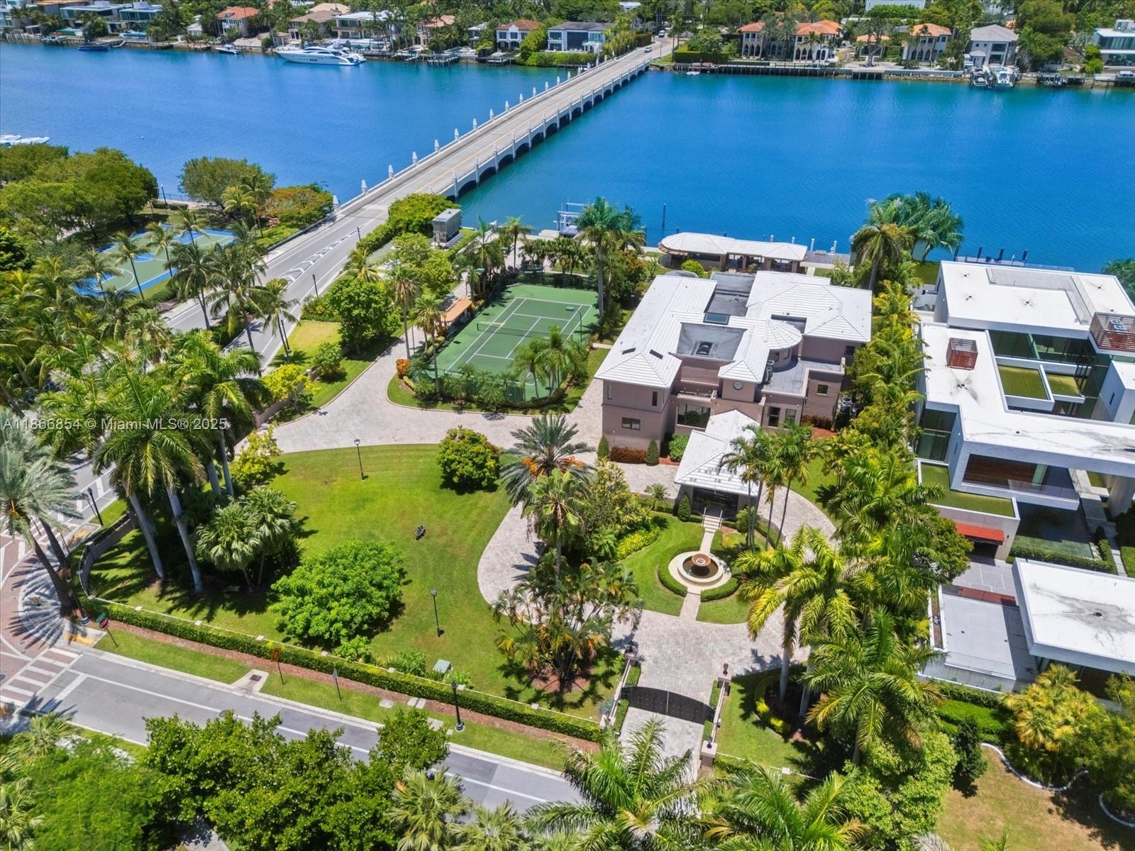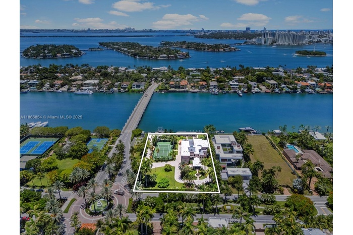 An extraordinary double lot canvas on coveted Palm Island, this rare assemblage spans 60, 000 SF with 200 feet of prime water frontage.