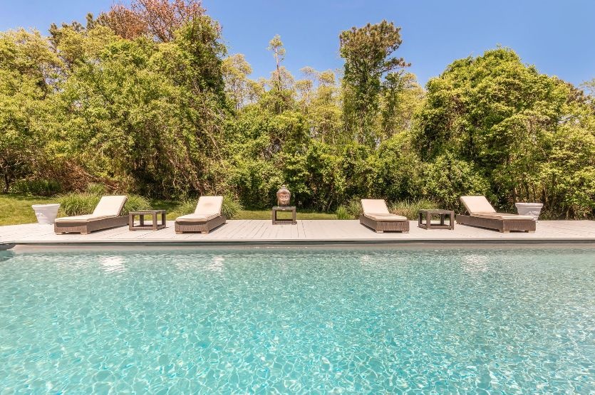 This beautiful 4 bedroom 3.5 bath contemporary home is on an acre of beautiful land, just minutes from the village and the beach. This spacious home has a large gourmet kitchen and living room. Enjoy the outdoors with an inviting porch or take a dip in the heated pool.