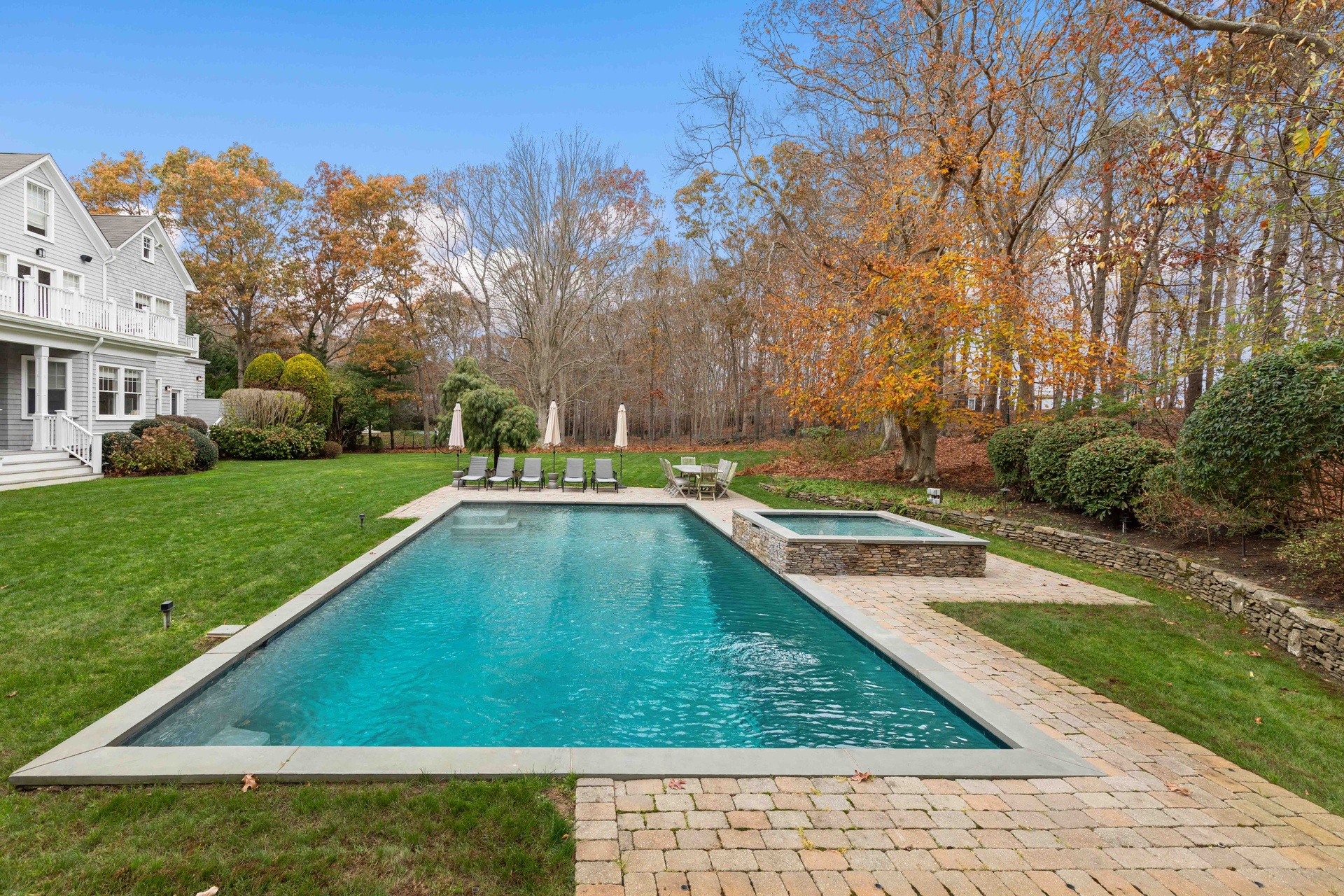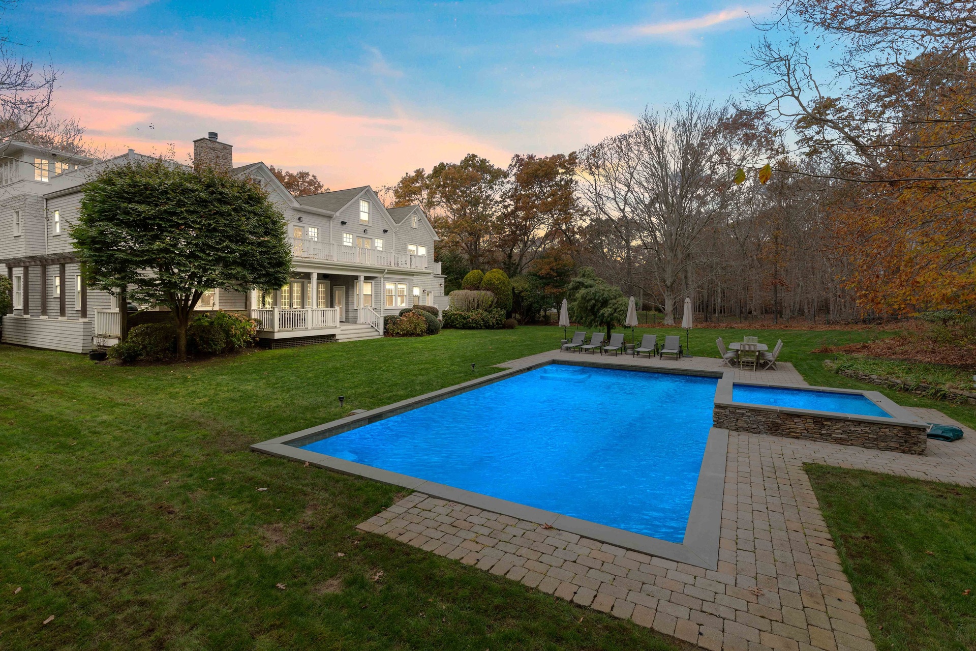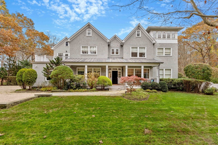 This lovely 1.25-acre traditional home has 6 bedrooms, 7.5 bathrooms, a Gunite pool, a Jacuzzi, and an outdoor kitchen. You can access the expansive entry hall, dining room, den, and expansive view of the grounds from the covered front porch. The breakfast area and kitchen are accessible from the lounging room with a fireplace. A huge covered back deck, a Gunite pool, a spa, and a perfectly landscaped property are all visible from the first floor's primary suite, powder room, and pool house bathroom. The finished basement level, also includes a home theater, gym, playroom, gaming room, and bar. The primary suite has a fireplace, a private terrace, a private office, and a fitness area located on the second floor. On this floor, there are three en-suite rooms and a reading area. It is close to Southampton, Water Mill, and Sag Harbor as well as all the farm stands and natural splendor of the Hamptons.