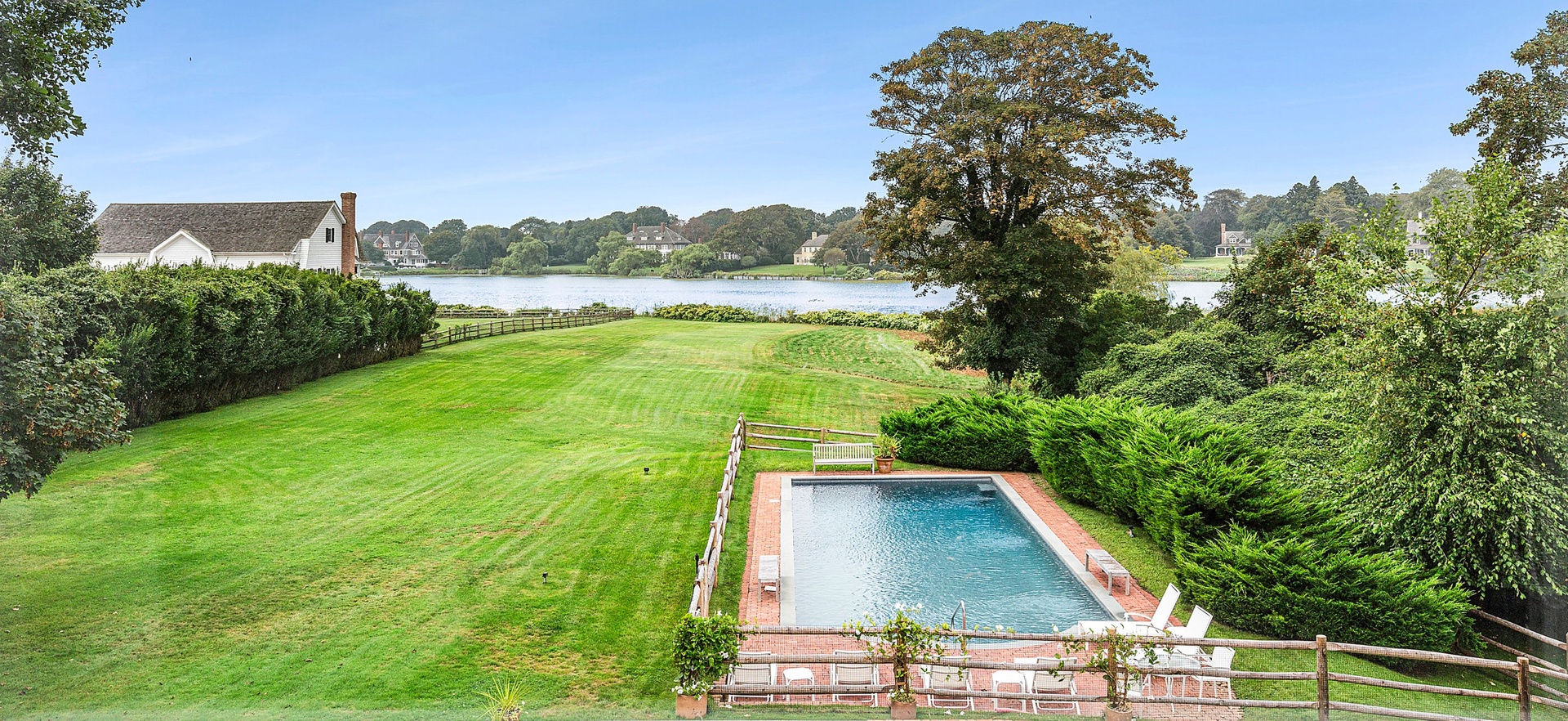 This is a Perfect Home on two very private acres. Four bedrooms, kitchen, spacious living and dining overlooking the heated pool, grounds, and Lake Agawam. Paneled den with fireplace also overlooking Lake Agawam. Beautiful views from the primary suite, as well. Close to the ocean and all Village amenities.