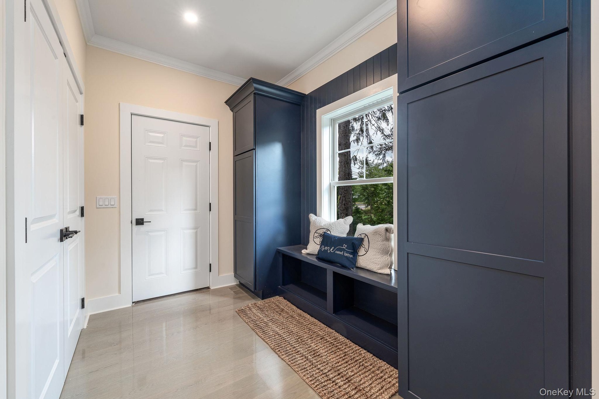 - Mudroom featuring crown molding and baseboards