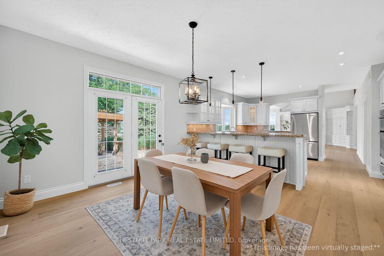 Set on a picturesque corner lot in the sought-after Island Lake Estates community, with just under an acre of manicured lawns and mature landscaping. This beautifully updated 3-bedroom bungaloft offers refined country living with a sophisticated touch. The home has been thoughtfully refreshed with light, wide-plank hardwood flooring and an interior re-paint in a soft, neutral palette. The open-concept layout is perfect for both everyday living and entertaining. The spacious gourmet kitchen features granite countertops, built-in stainless steel appliances, a wine fridge, and a brand-new garden door that leads to the covered sunroom - a perfect spot to relax or dine al fresco, rain or shine. In the living room, new garden doors open to the spacious backyard patio, complete with ready-to-go wiring for a new hot tub. The yard offers ample space to add a pool, with a gas line already roughed in and plenty of room to bring your backyard vision to life. The primary suite is a true retreat, newly renovated with custom closet space and a luxurious ensuite featuring a walk-in shower, water closet, and custom vanity - all finished with a designers eye for quality and detail. The lower level is partially finished with great potential - a roughed-in theatre room, home gym space, and a separate entrance from the garage make it ideal for a future in-law suite or private guest quarters. With hiking trails, conservation land, and nature at your doorstep and minutes from town, this is a rare opportunity to live in one of the area's most desirable communities - where convenience, peace, and privacy come together.