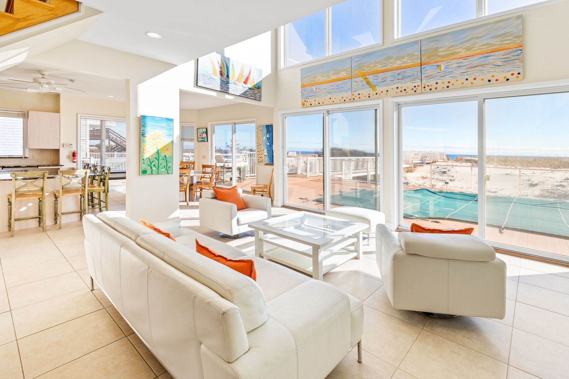 You are greeted by a dramatic entrance. Open floor plan consisting of living room and a oversized kitchen with eating area. Marble floors throughout. 2 bedrooms on 1st floor. Upstairs you have Master and 3 bedrooms. Ocean and Bay Views from every room. Private path to ocean. Heated gunite pool with jacuzzi. Sept. 8-30 $45,000.00, Oct.$30,000.00 , Nov. $30,000.00, Dec.$30,000.00 2021 Jan $15,000.00 , Feb. $15,000.00, March $15,000.00 , April $35,000.00