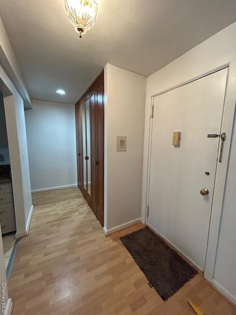 - Foyer featuring light wood-type flooring and a textured ceiling