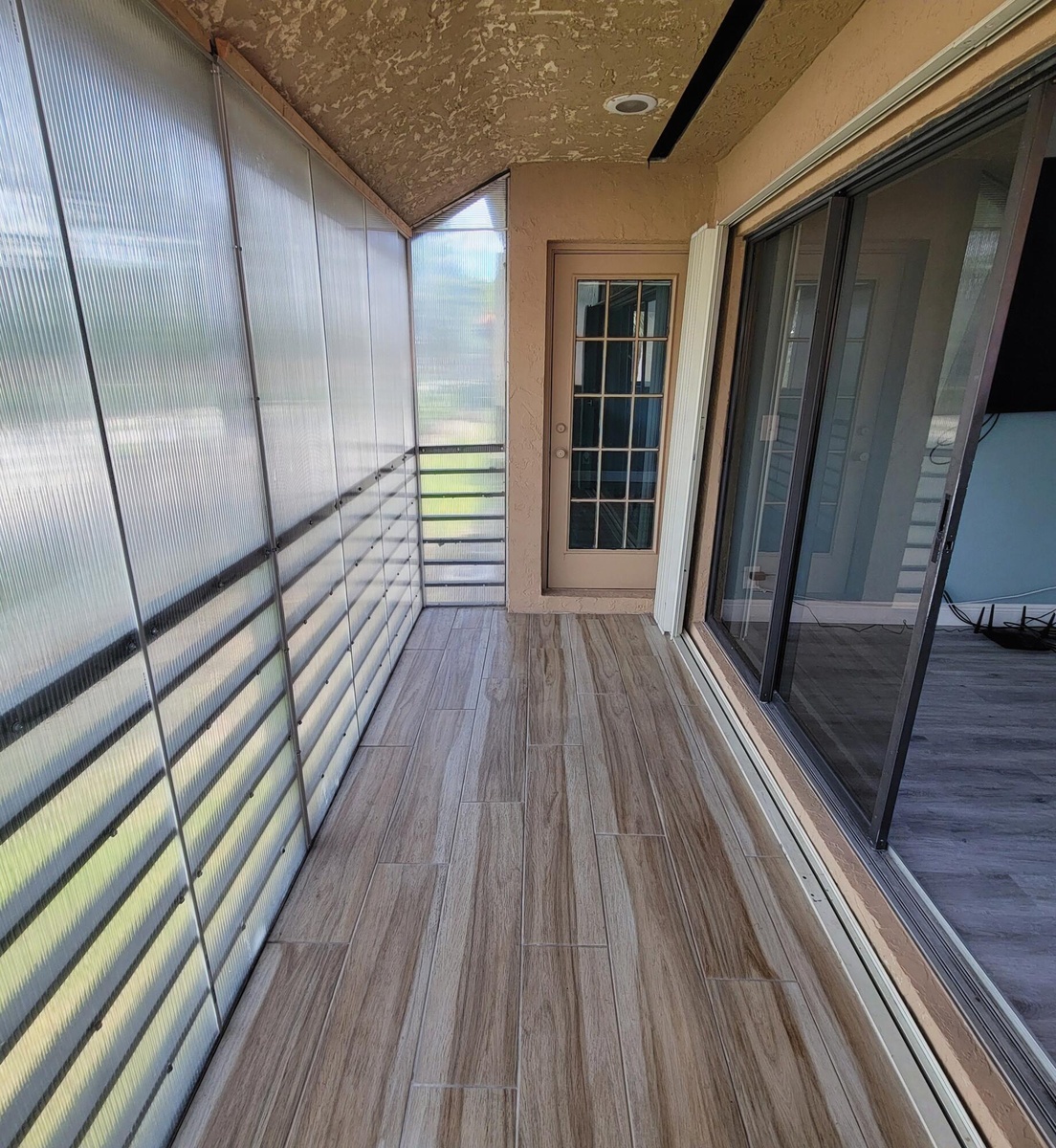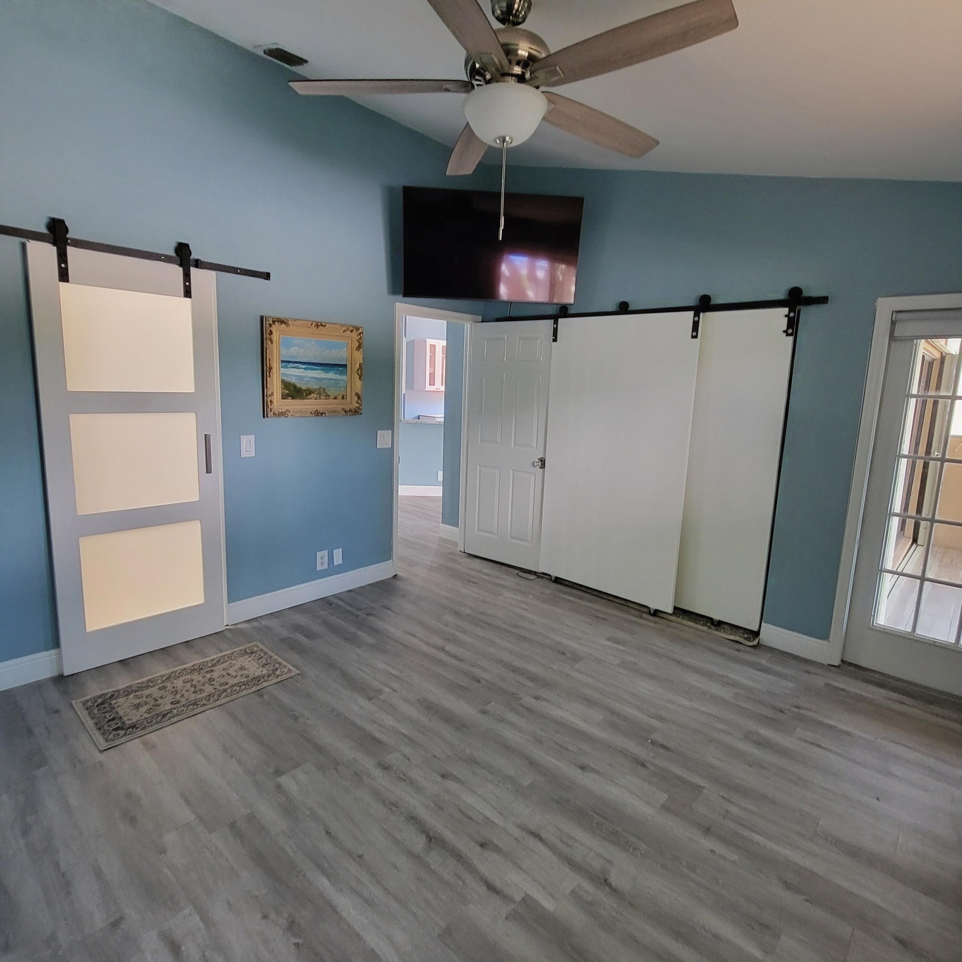 LOOK NO FURTHER CUSTOM STATE OF THE ART SMART HOME OFFERS UNIQUE LIGHTING AND MODERN TECHNOLOGYCOMPLETE WITH 3 EXPANSIVE WALL MOUNTED FLAT SCREEN TV'S FOR YOUR ENJOYMENT TASTEFULLY DESIGNED & UPDATED OPEN FLOORPLAN WITH VAULTED CEILINGS VINYL FLOORS THROUGH OUT OPEN KITCHEN WITH WRAP AROUND BAR GREAT FOR ENTERTAINING SS APPLIANCES NEW CUSTOM SIZED REFRIGERATOR LEATHERED GRANITE COUNTERTOP WHITE WOOD CABINETS FRESHLY PAINTED WALLS INTERIOR LAUNDRY CUSTOM LIGHTING WITH SLIDER SWITCHES CONTEMPORARY CHANDELIERS OPENS TO AN ENCLOSED SCREENED PATIO WITH ADDED PRIVACY LARGE PRIMARY BEDROOM SLIDING BARN DOOR TO ENSUITE ADDS PRIVACY & IS A SPACE SAVER OPEN WALK IN CLOSET UPDATED VANITY & GLASS ENCLOSED SHOWER PLENTY OF NATURAL LIGHT & STORAGE A MUST SEE SCHEDULE A SHOWING TODAY BRING ALL OFFERS