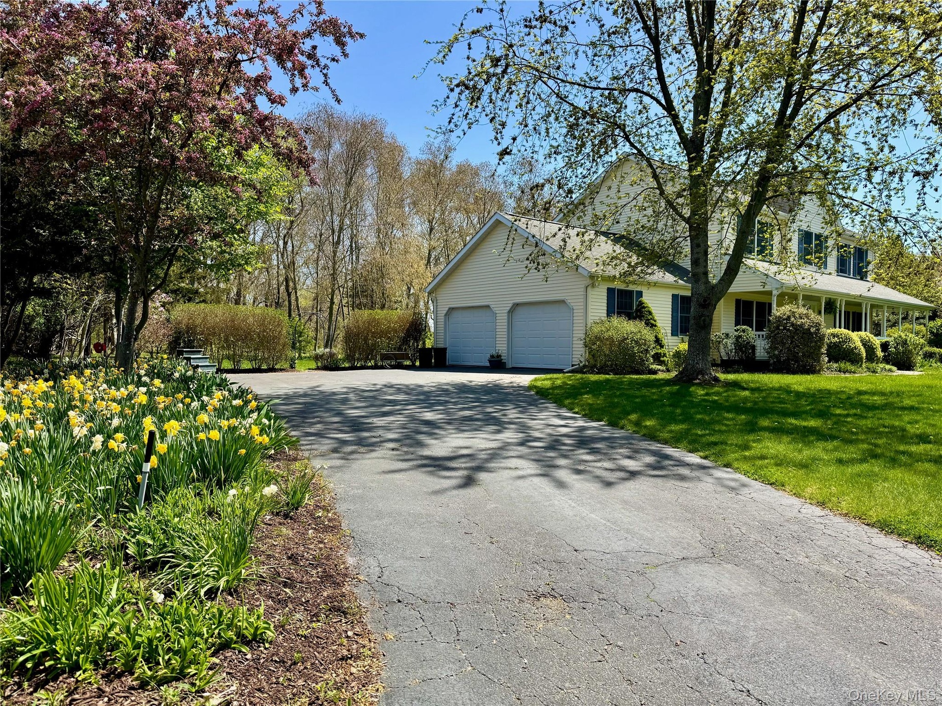 Welcome to 4 Simeon Road in coveted Jamesport. This custom built colonial style 4 bedroom, 3 bath home offers a perfect North Fork retreat! Beautifully cared for, and set proudly on a lush acre with manicured lawns, specimen trees, and flowering gardens- this North Fork home provides both curb appeal and privacy, with a lovely backyard, bordering quiet woods and farmland. Enter the welcoming foyer, and to your left is a lovely living room with wood floors featuring French doors that open to the wrap around deck. To your right is the sun filled formal dining room with wood floors. The kitchen beyond boasts new stainless-steel appliances and flows seamlessly into a casual dining area and great room with wood-burning fireplace and sliders to the back patio.- a perfect reprieve for relaxing or entertaining. Upstairs, the luxurious and spacious primary suite includes its own en-suite bath, complemented by 3 additional bedrooms and hallway bath. Additional highlights include a first-floor full bath, central A/C, in-ground sprinklers, 2+ car attached garage, and a full basement with high ceilings and bilco door to the backyard. This exceptional home is perfectly situated close to vineyards, wineries, farmstands, golf courses- and just a stone's throw to Iron Pier Sound beach- one of the North Fork’s widest stretches of beach with unforgettable sunsets. Whether you’re seeking a year-round residence or a vacation retreat, this home offers the perfect blend of classic style, comfort, and North Fork living.
