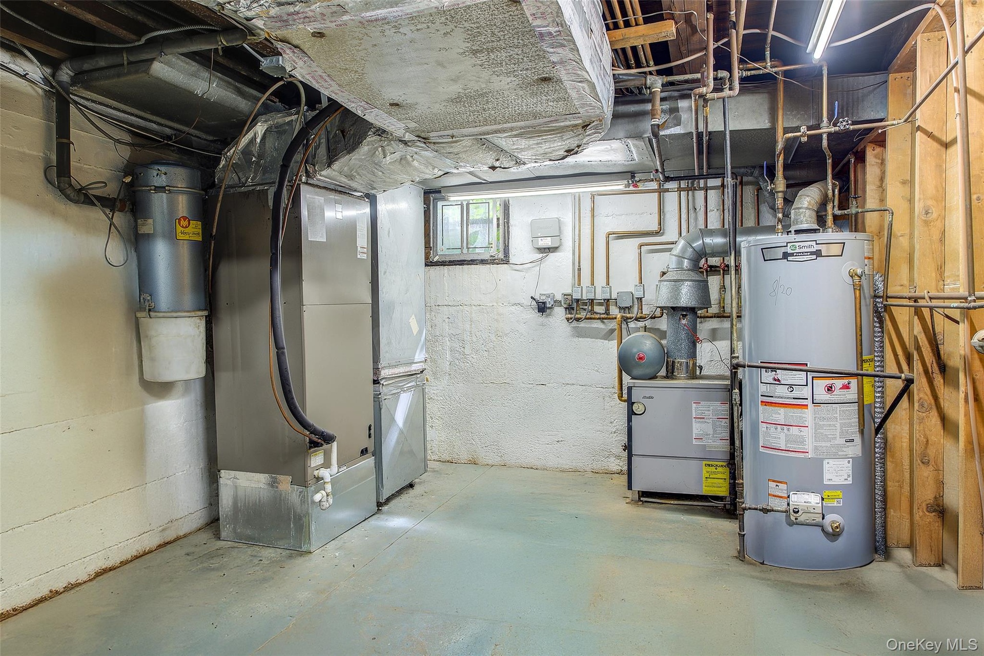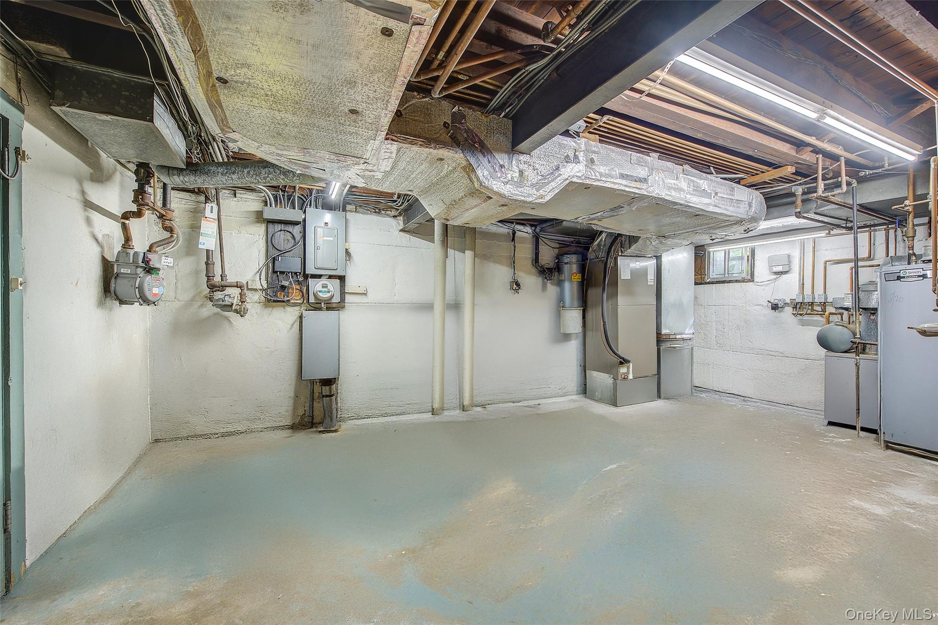 - Below grade area with electric panel, water heater, and heating unit
