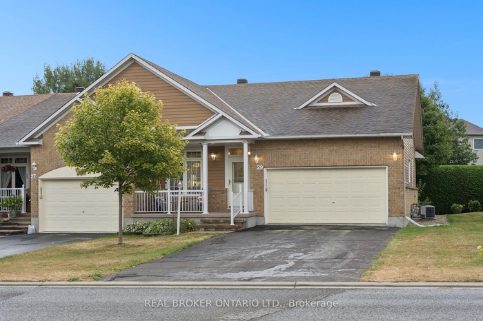 DescriptionWelcome to 29 Sable Run Drive in Stittsville a spacious semi-detached bungalow in a sought-after, family-friendly neighbourhood. The main floor features well-defined living spaces, including a galley-style kitchen with a bright breakfast nook, a dining room that flows into the living room, and sliding doors that lead to a back deck with outdoor dining. The living room boasts a vaulted ceiling, crown moulding, and a cozy gas fireplace. Durable vinyl flooring and a tiled entry make maintenance easy. The primary suite offers a walk-in closet and ensuite with double vanity, soaker tub, and tiled shower, while a second bedroom and full bath complete this level. Convenient main floor laundry adds function. Downstairs, discover a large rec room, two additional bedrooms (one with a walk-in closet), and another full bathroom. Enjoy easy-care front and backyards, plus an attached two-car garage and private driveway. Perfect for downsizers or families seeking comfort and convenience in a welcoming community.Virtual Tour: https://sites.ardentmediagroup.ca/29sablerundriveAmenities- Natural Gas
