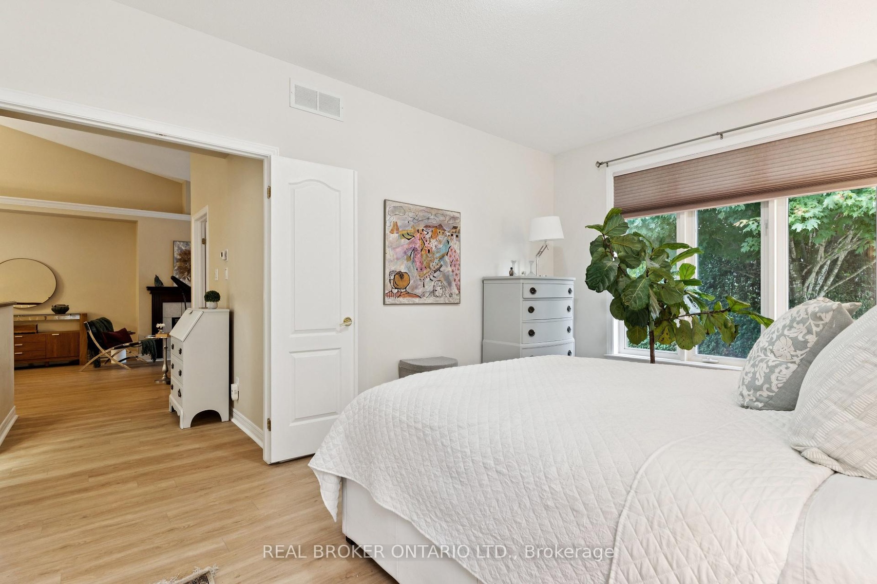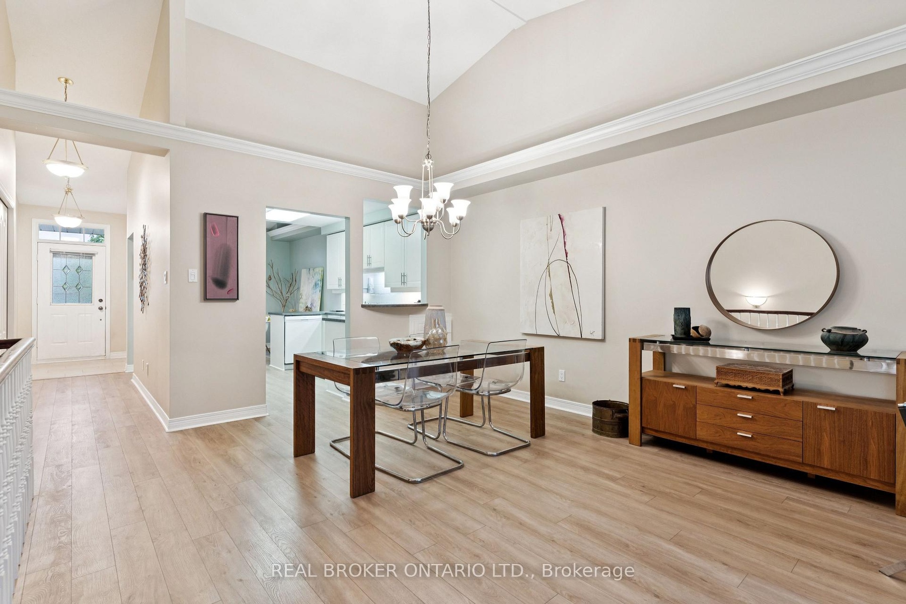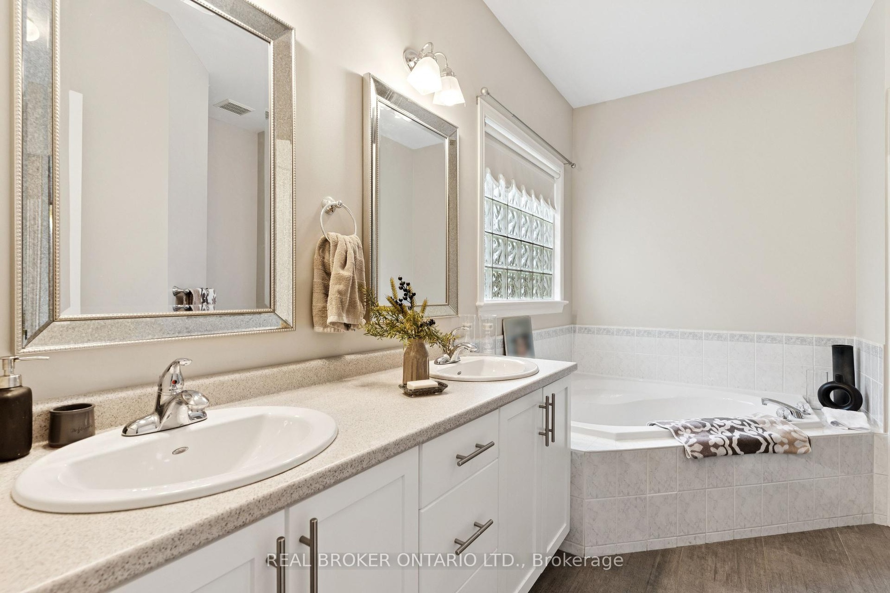 Welcome to 29 Sable Run Drive in Stittsville a spacious semi-detached bungalow in a sought-after, family-friendly neighbourhood. The main floor features well-defined living spaces, including a galley-style kitchen with a bright breakfast nook, a dining room that flows into the living room, and sliding doors that lead to a back deck with outdoor dining. The living room boasts a vaulted ceiling, crown moulding, and a cozy gas fireplace. Durable vinyl flooring and a tiled entry make maintenance easy. The primary suite offers a walk-in closet and ensuite with double vanity, soaker tub, and tiled shower, while a second bedroom and full bath complete this level. Convenient main floor laundry adds function. Downstairs, discover a large rec room, two additional bedrooms (one with a walk-in closet), and another full bathroom. Enjoy easy-care front and backyards, plus an attached two-car garage and private driveway. Perfect for downsizers or families seeking comfort and convenience in a welcoming community.